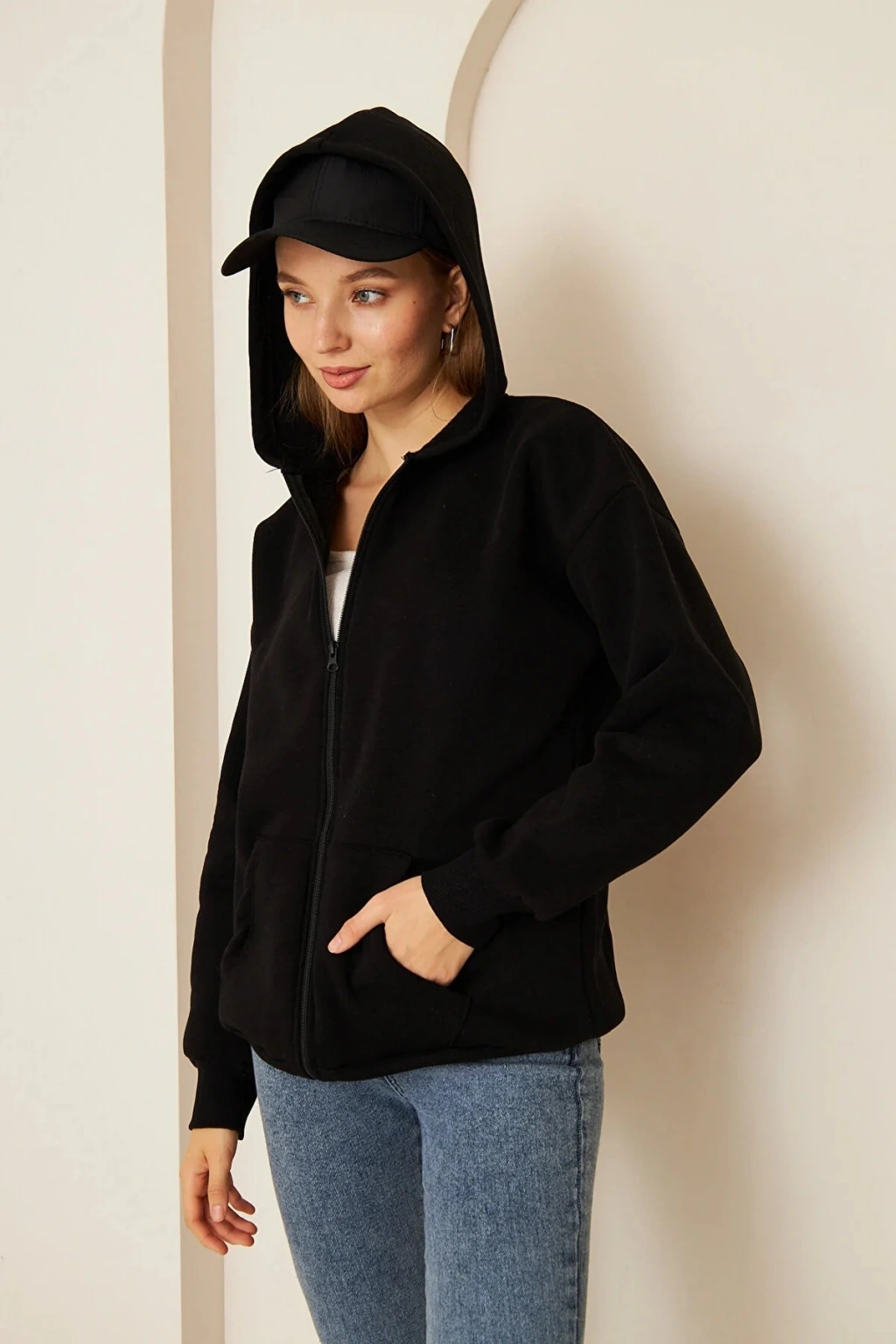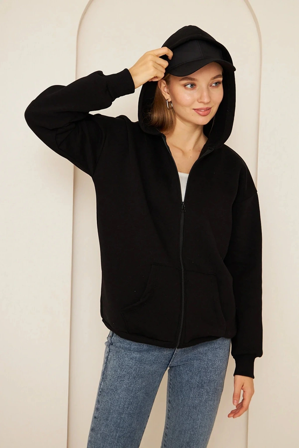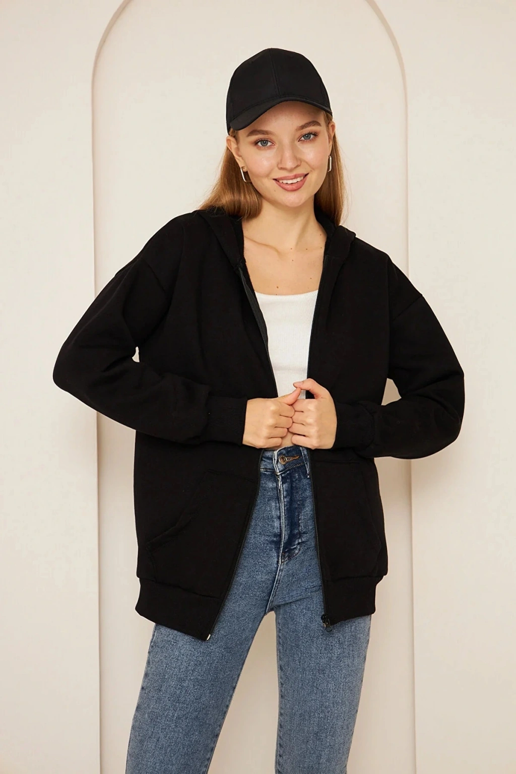 Kapüşonlu tasarımı ile başınızı soğuktan korurken şık bir görünüm sunar; Fermuarlı kapama şekli sayesinde kolayca giyilip çıkarılabilir ve tam koruma sağlar; Şardonlu yapısı ile konforlu bir dokunuş ve sıcak tutma özelliği sunar; Standart boyu, farklı vücut tiplerine uyum sağlayarak rahat bir kullanım imkanı tanır; 3 iplik dokuma tipi, dayanıklılığı artırarak uzun süreli kullanım vaat eder; %100 pamuklu materyal bileşeni cildinizle dost, nefes alabilen bir yapıya sahiptir; Cep detayları hem fonksiyonel saklama alanları sunar hem de estetik bir dokunuş katar; Regular silueti ile vücudu saran ancak sıkmayan rahat bir kesimdir; Cepli tasarımı günlük eşyalarınız için pratik saklama çözümleri sunar; Örme kumaş tipi esneklik ve yumuşaklık sağlayarak konforlu bir deneyim yaşatır; Oversize kalıbı modern ve trend bir görünüm kazandırırken hareket;
