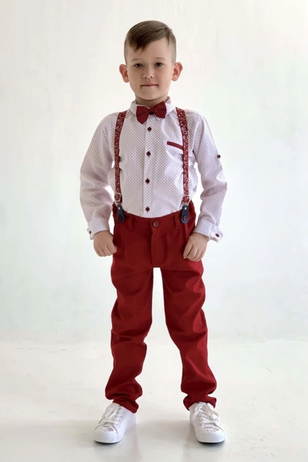 - 23 Nisan Gösteri Kostümü, erkek çocuklar için özel olarak tasarlanmış bir takım olup, 4 parçadan oluşmaktadır.; - Genç koleksiyonuna ait bu takım, günlük kullanım için idealdir ve rahatlığı ön planda tutar.; - Sadece gömlek, pantolon ve papyondan oluşan set, kolay kombinlenebilirliği ile dikkat çeker.; - Pamuk materyali sayesinde cildi tahriş etmeden konforlu bir deneyim sunar.; - Uzun kollu gömlek ve uzun paçalı pantolon, mevsim geçişlerinde de tercih edilebilecek ideal seçimdir.; - Gömleğin göğüs kısmında çift cep detayı bulunurken, pantolonun bel bölgesinde ise ekstra destek sağlayan bir yapıya sahiptir.; - Tül dokuma tipiyle hafif ve nefes alabilen yapısıyla gün boyu rahatlık sağlar.; - Desenli tasarım ile şıklığına şıklık katarken, regular kalıp vücuda tam oturan bir uyum sunar.; - Standart kol tipine sahip olan bu takım, hareket özgürlüğünü kısıtlamaz.; - Günlük ortamlarda rahatlıkla kullanılabilir; okul etkinlikleri veya özel davetlerde ideal bir seçenektir.