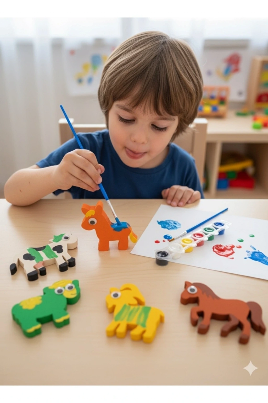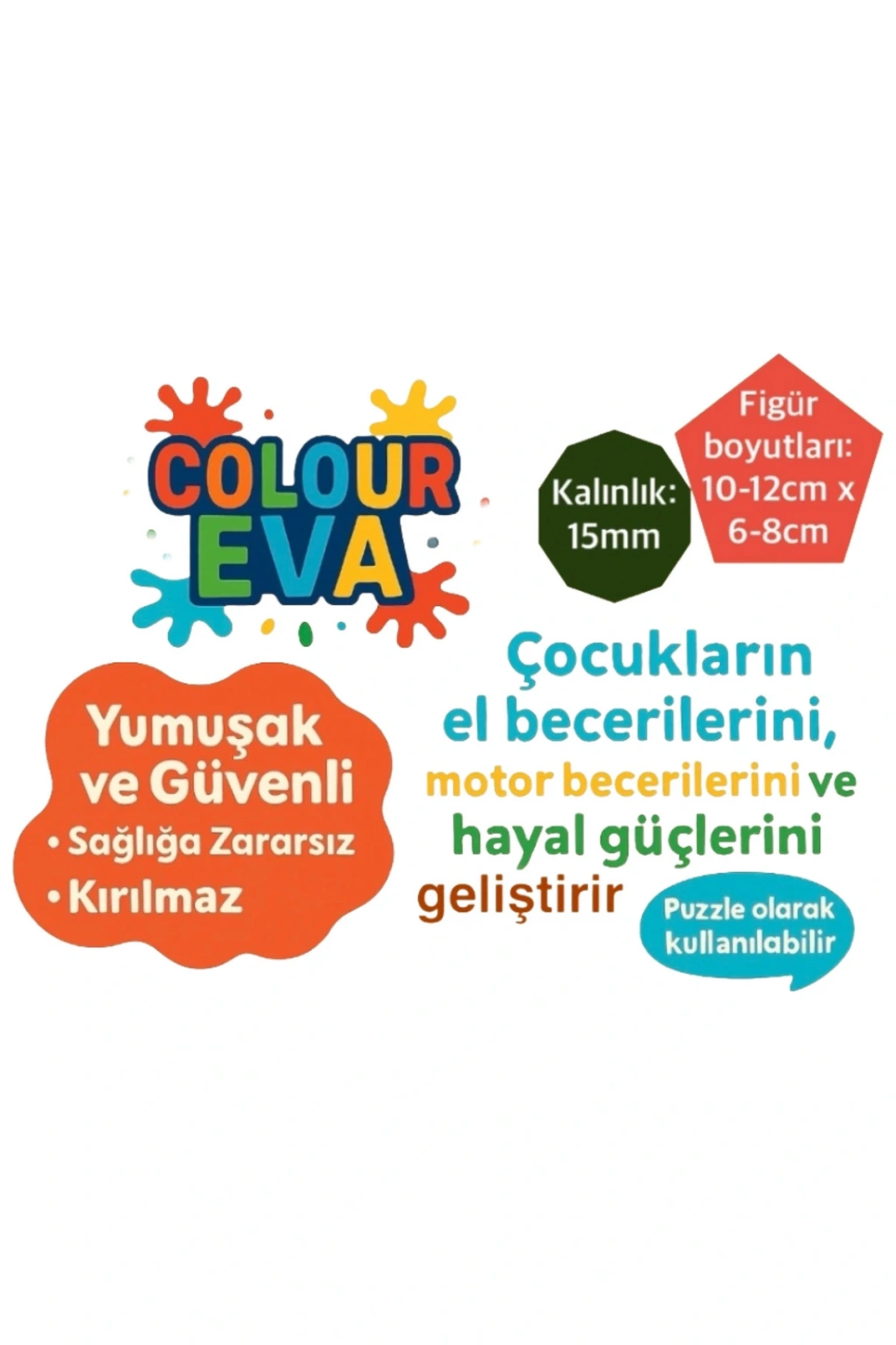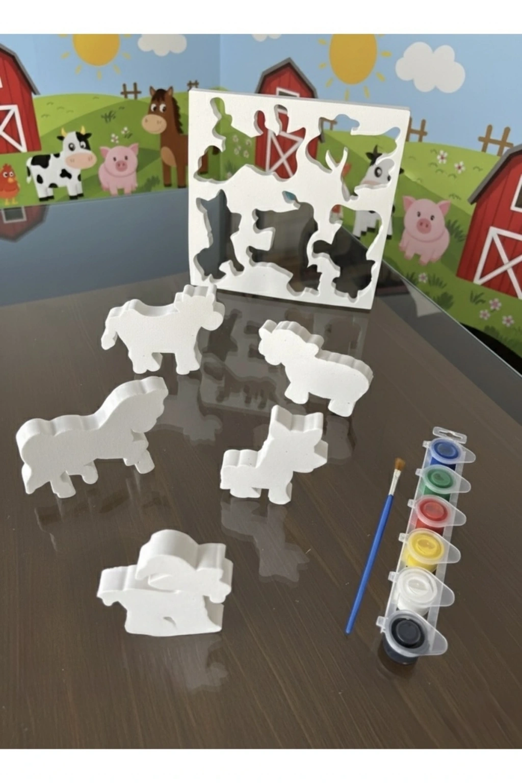 100% Eva malzemeden üretilmiş boyanabilir 5 adet çiftlik hayvan figürleri.; Aynı zamanda eva sünger baskı ve puzzle olarak da kullanılabilir.; Çocuklar için güvenli, yumuşak, kırılmaz, sağlığa zararsız malzeme.; Çocukların el becerilerini, motor becerilerini ve hayal güçlerini geliştirir.; Boya seti ve fırçası pakete dahildir.; Boyutları görsellerde belirtilmiştir.; 36 aydan küçük çocuklar için uygun değildir.