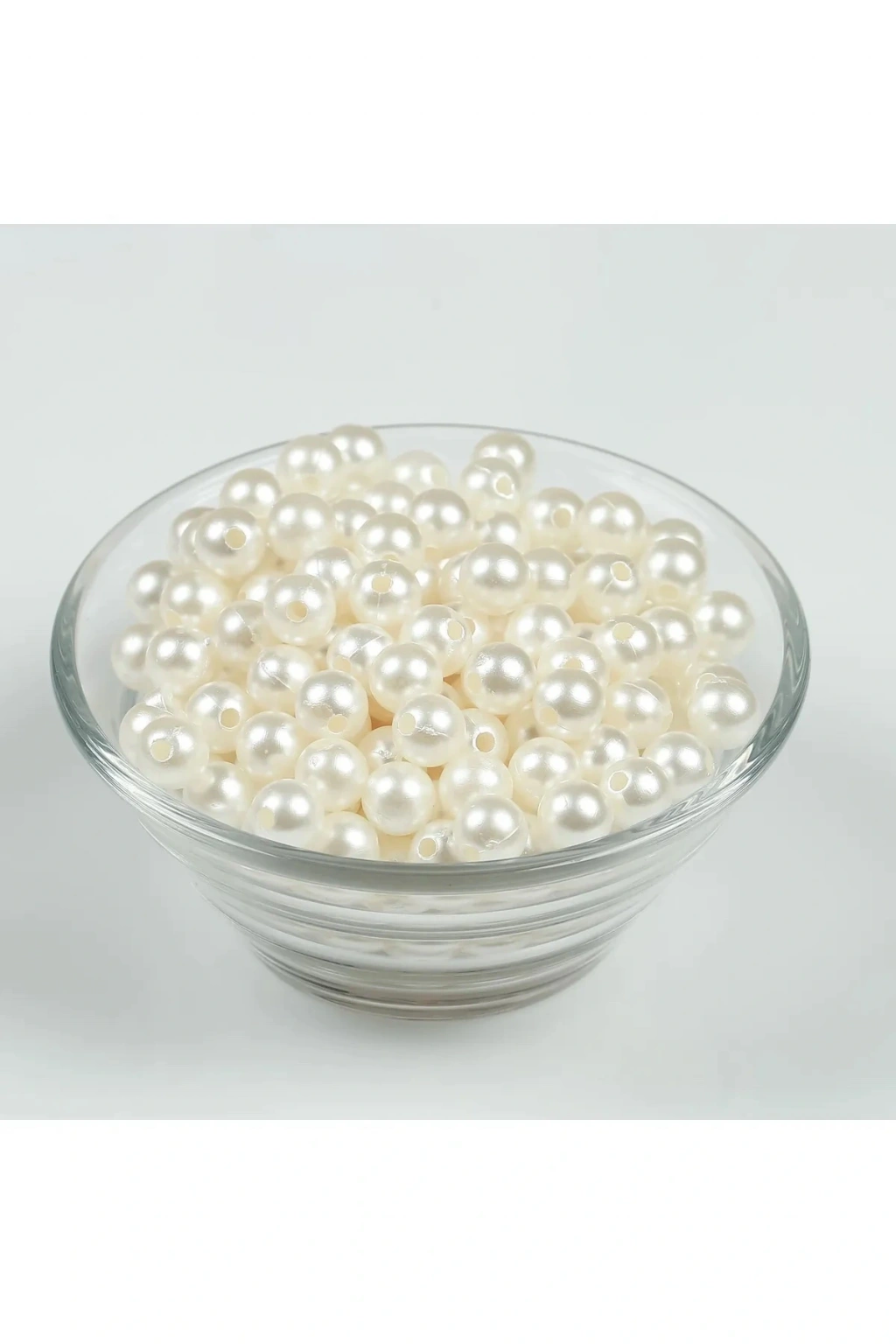 8 mm KREM RENK İNCİ BONCUK, 500 GR , PLASTİK İNCİ BONCUK