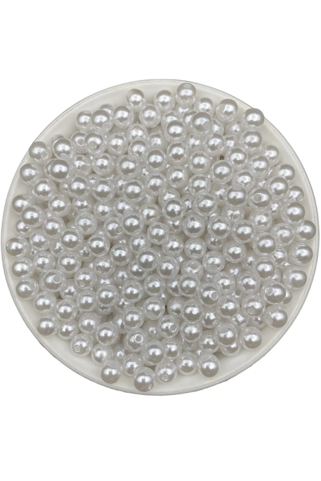 Plastik Inci, 50gr 8mm Beyaz Plastik Inci Boncuk , Takı Yapım Boncuğu (50gr,~180 Adet )
