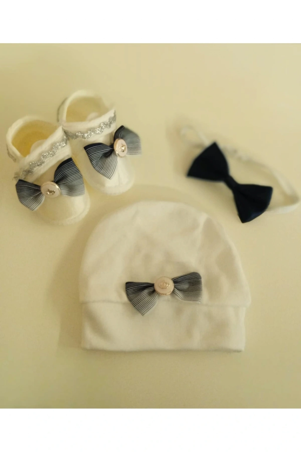 - Bebeğinizin şıklığını tamamlayacak, yumuşak dokusuyla bebeğinizin cildine nazikçe dokunan bebek papyon bere patik seti.; - Yeni doğanlardan itibaren kullanıma uygun olan bu set, miniklerinize özel tasarlanmıştır.; - Türkiye'de üretilmiş olup yerel malzemelerle kalite standartlarına uygun olarak hazırlanmıştır.; - Erkek bebekler için ideal olan bu set, bebeğinizin ilk günlerinden itibaren tarz sahibi görünmesini sağlar.
