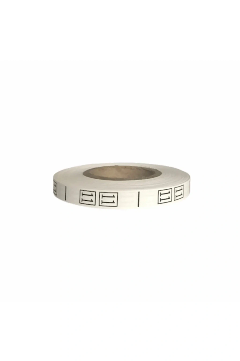 Baskı beden etiketi, Tırnak etiket, 1 cm genişliğindedir; 1 rulo ,1 ruloda 1000 adet etiket bulunmaktadır; Yapışkanlı değildir; Dikilebilir;