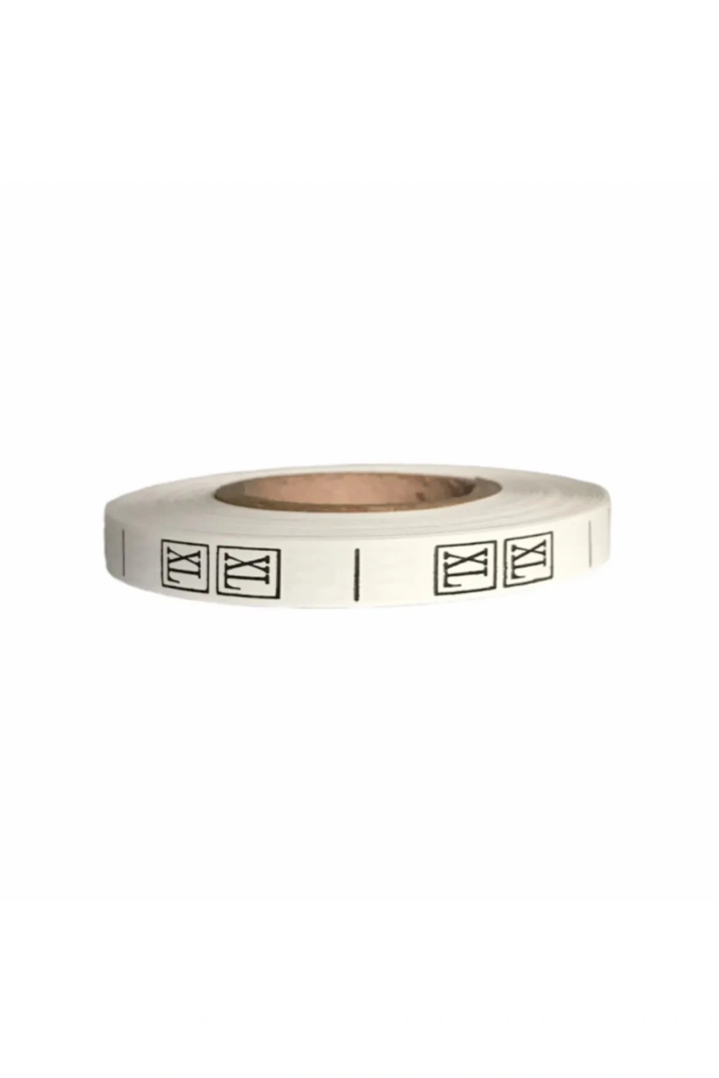 Baskı beden etiketi, Tırnak etiket, 1 cm genişliğindedir; 1 rulo ,1 ruloda 1000 adet etiket bulunmaktadır; Yapışkanlı değildir; Dikilebilir;