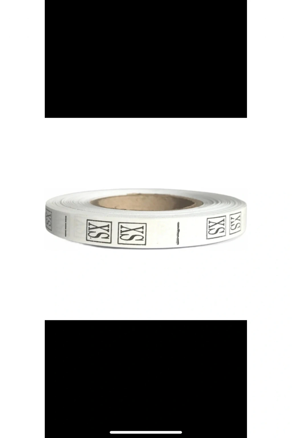 Baskı beden etiketi, Tırnak etiket, 1 cm genişliğindedir.; 1 rulo ,1 ruloda 1000 adet etiket bulunmaktadır.; Yapışkanlı değildir.; Dikilebilir.