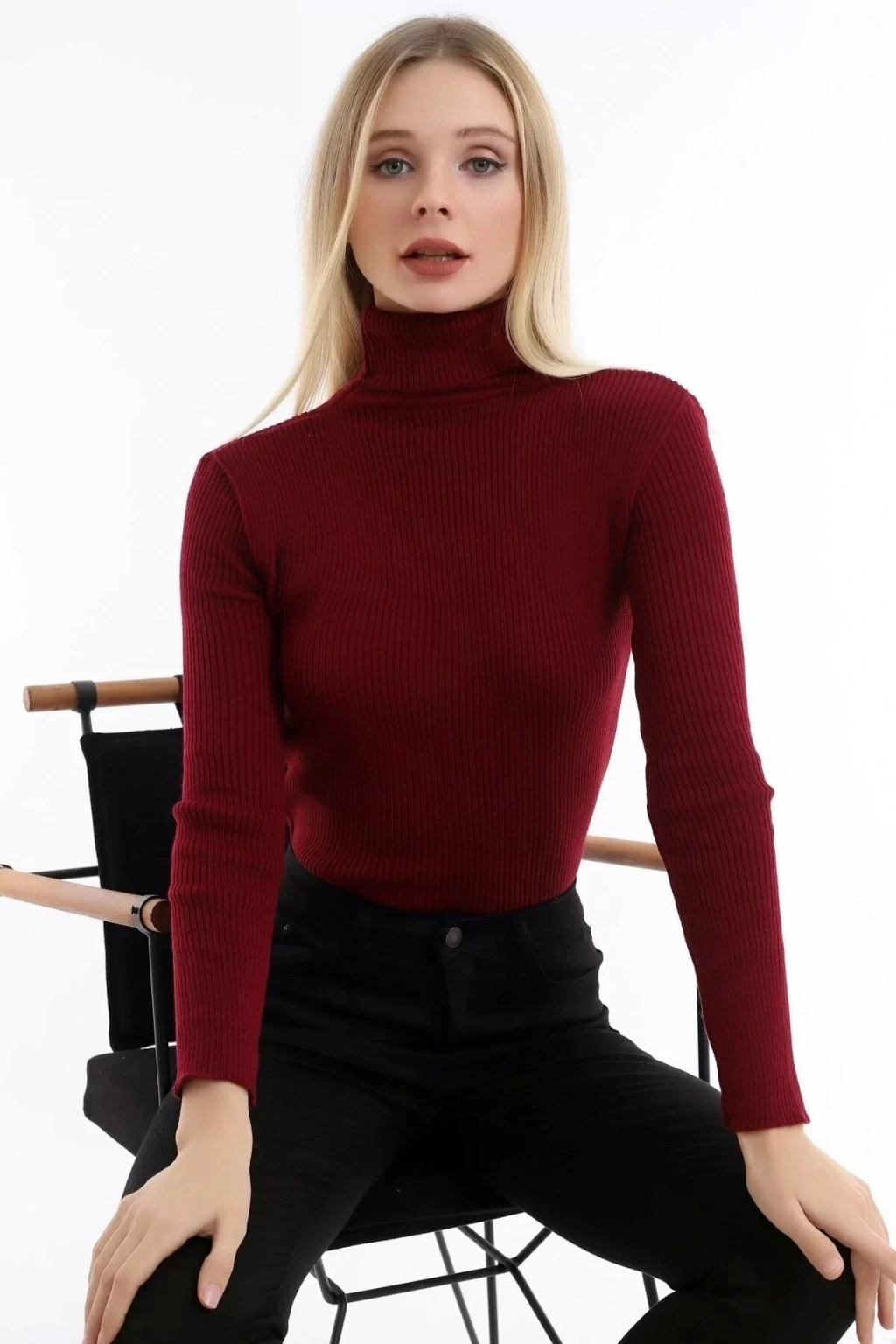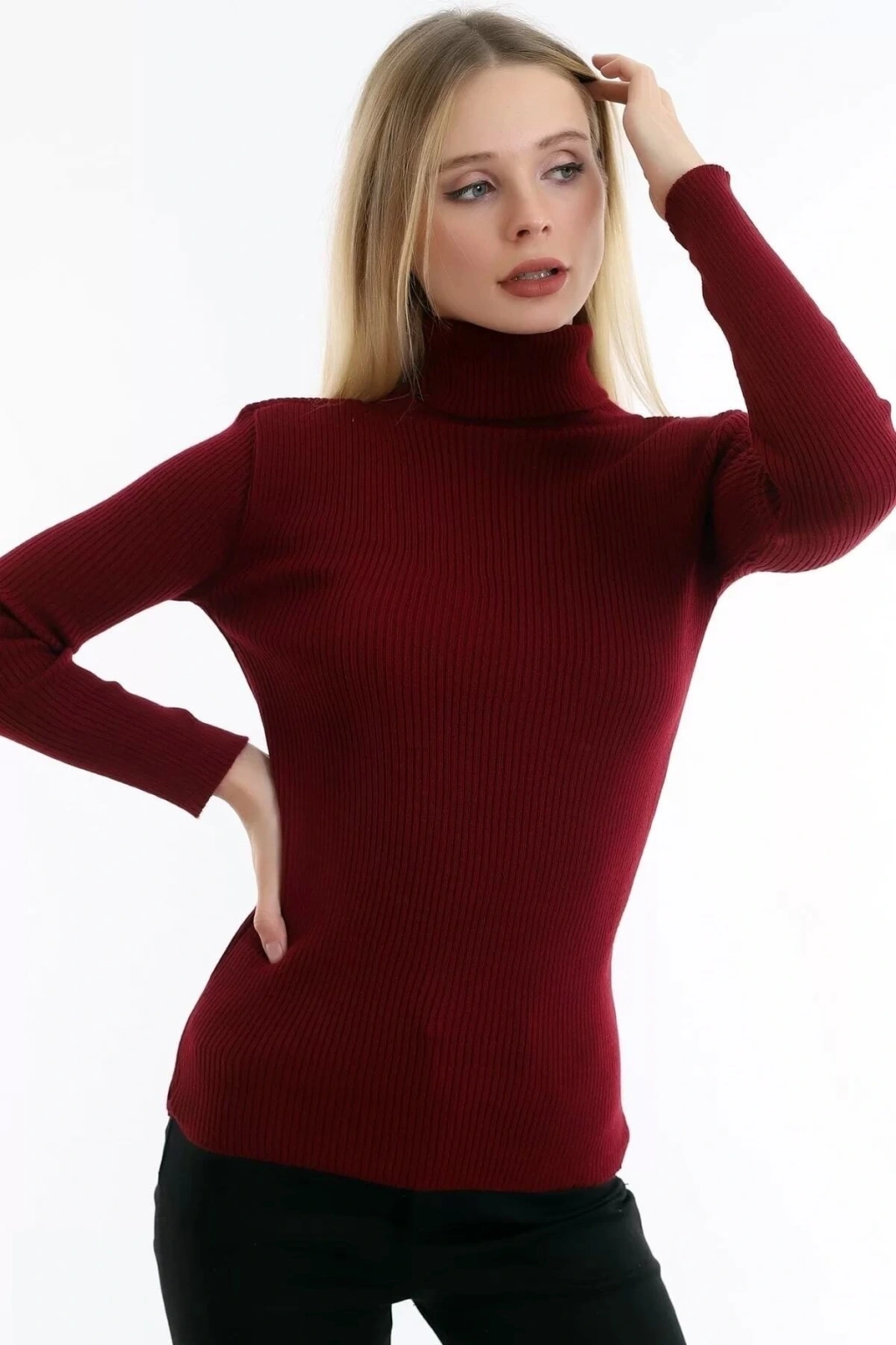 Boğazlı Bordo Yumuşak Kazak
