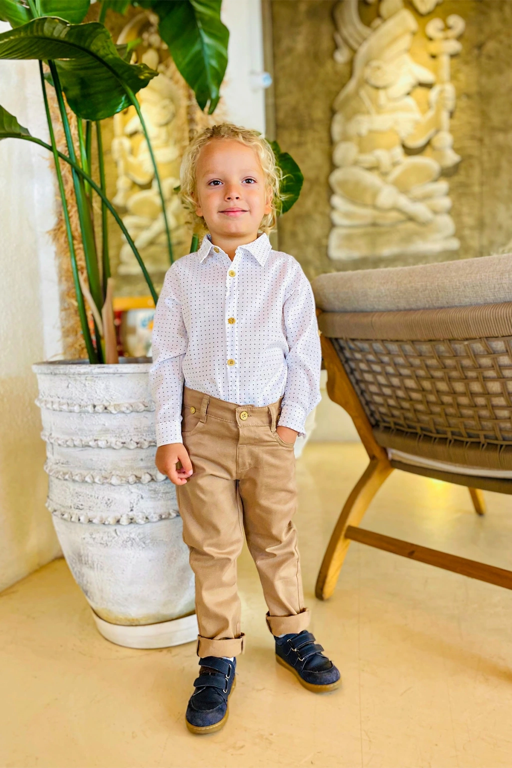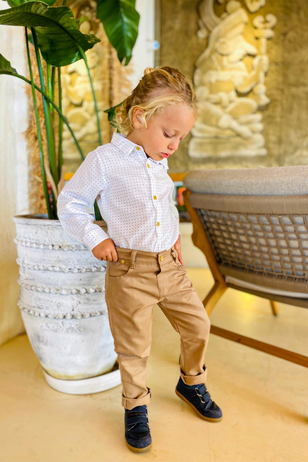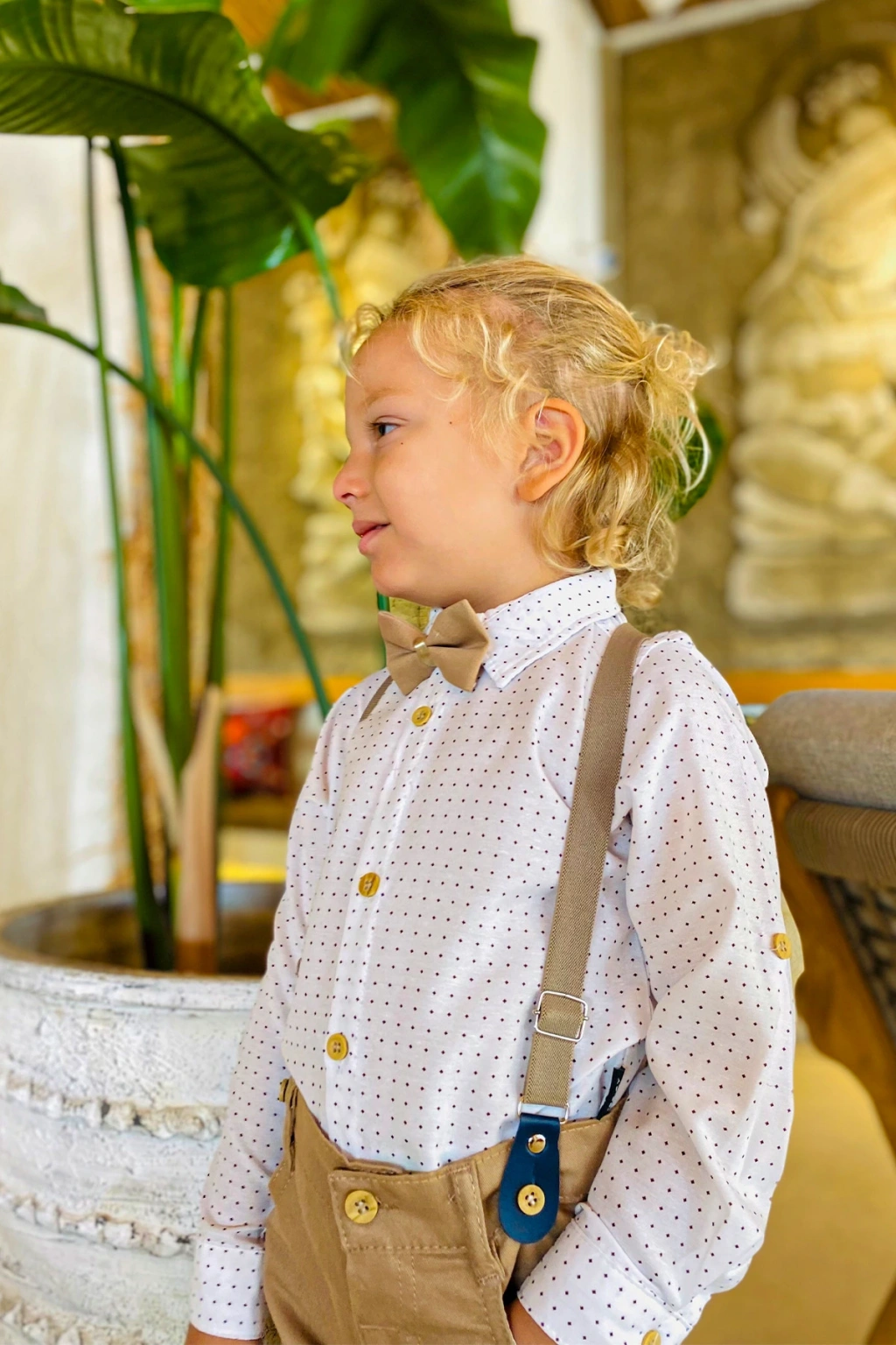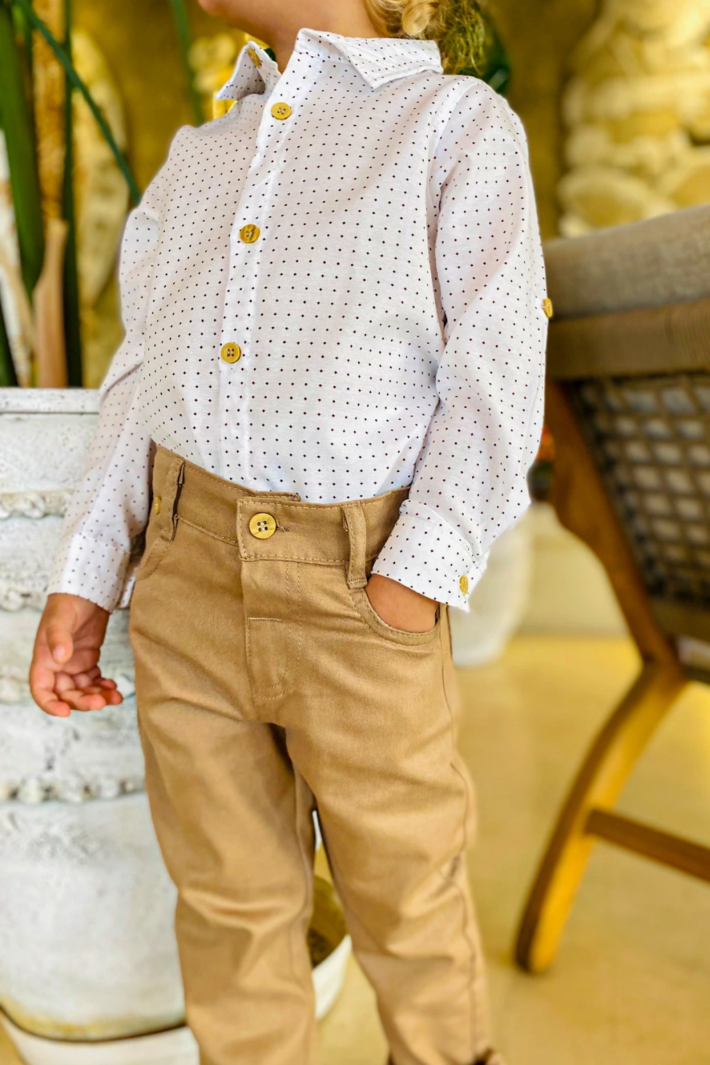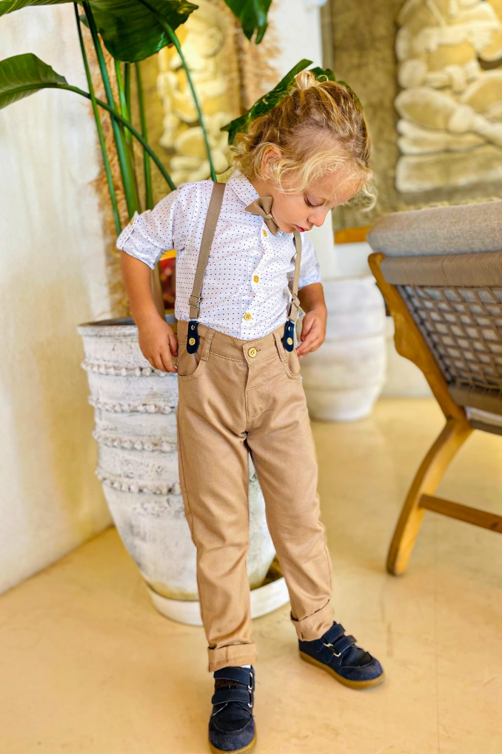 - Uzun kollu tasarımı ile mevsim geçişlerinde ve serin havalarda ideal bir kullanım sunar.; - Düz paça kesimi sayesinde rahat hareket etme özgürlüğü sağlar ve şık bir görünüm kazandırır.; - Resmiyeti ve zarafeti bir arada sunar, özel günlerde dikkat çekici bir stil oluşturur.; - Pamuklu materyali cildi tahriş etmeden konforlu bir deneyim sağlar ve nefes alabilir yapısıyla gün boyu rahatlık sunar.; - Desenli tasarımı ile göz alıcı bir görünüm sergiler, çocukların enerjisini yansıtır.; - 4 parçadan oluşan set içeriği; ceket, pantolon, gömlek ve papyon içerir, tam bir kombinasyon sunar.; - Desenli yapısıyla dikkat çeken bu takım elbise, çocukların tarzını ön plana çıkartır.; - Basic koleksiyonun sadeliğiyle her ortama uyum sağlar; şık ve gece etkinlikleri için idealdir.; - Sürdürülebilirlik detayının bulunmamasına rağmen ürünün kalitesine ve dayanıklılığına odaklanılmıştır.; - Pamuklu materyal bilgisi için etiketi kontrol edebilirsiniz; detaylı bilgi için ürün etiketine başvurmanız önerilir.; - 30 derecede makinede yıkama talimatına uyarak ürünün uzun ömürlü kullanımını sağlayabilirsiniz; beyazlatıcı ve kurutucu kullanımına karşı uyarıda bulunulmuştur.; - Cool & Comfort kişiliğe sahip bu takım elbise, rahatlığı şıklıkla buluşturur.; - Doğal düğme detayları ile hem dayanıklılık hem de estetik bir dokunuş katmaktadır.; - Fitted kalıp ile modern ve şık bir siluet çizerken, dokuma kumaşı dayanıklılığı arttırır.; - Çocuk yaş grubuna uygun olarak tasarlanmıştır; genç beylerin tarzını yansıtan dinamik tasarımlara sahiptir.; - Erkek cinsiyetine özel olarak üretilmiştir; erkek çocukların gardırobuna hitap eden renk ve desenlerle zenginleştirilmiştir.