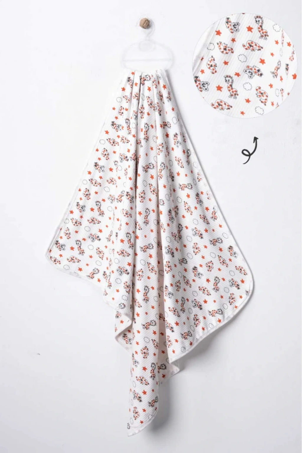 - %100 pamuklu yapısı ile bebeğinizin cildine nazik dokunuşlar sunar ve doğal bir konfor sağlar.; - Çift taraflı tasarımı sayesinde pratik kullanım imkanı sunar; istediğiniz zaman yüzeyini değiştirebilirsiniz.; - 85x80 cm boyutlarındaki genişliği ile bebeğinizin veya çocuğunuzun rahatça sarılmasına olanak tanır.; - Unisex tasarımı sayesinde hem kız hem de erkek bebekler için uygundur; her iki cinsiyete de hitap eder.; - Sertifikalı üretim süreciyle kalite standartlarına uygun olarak üretilmiştir; güvenle tercih edebilirsiniz.
