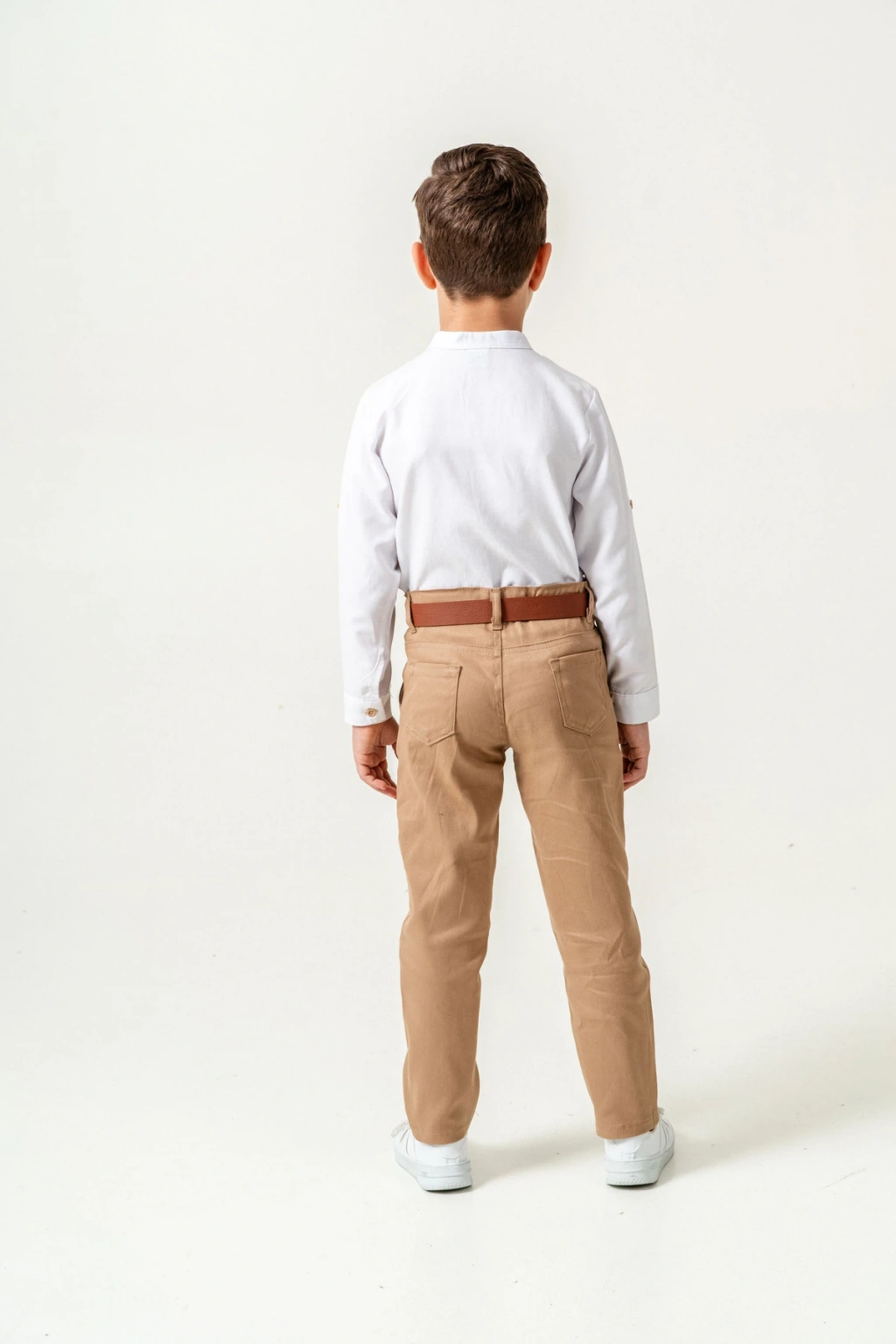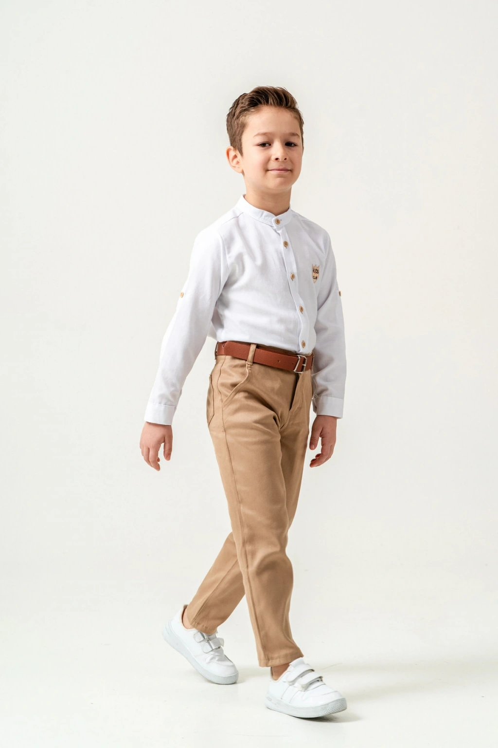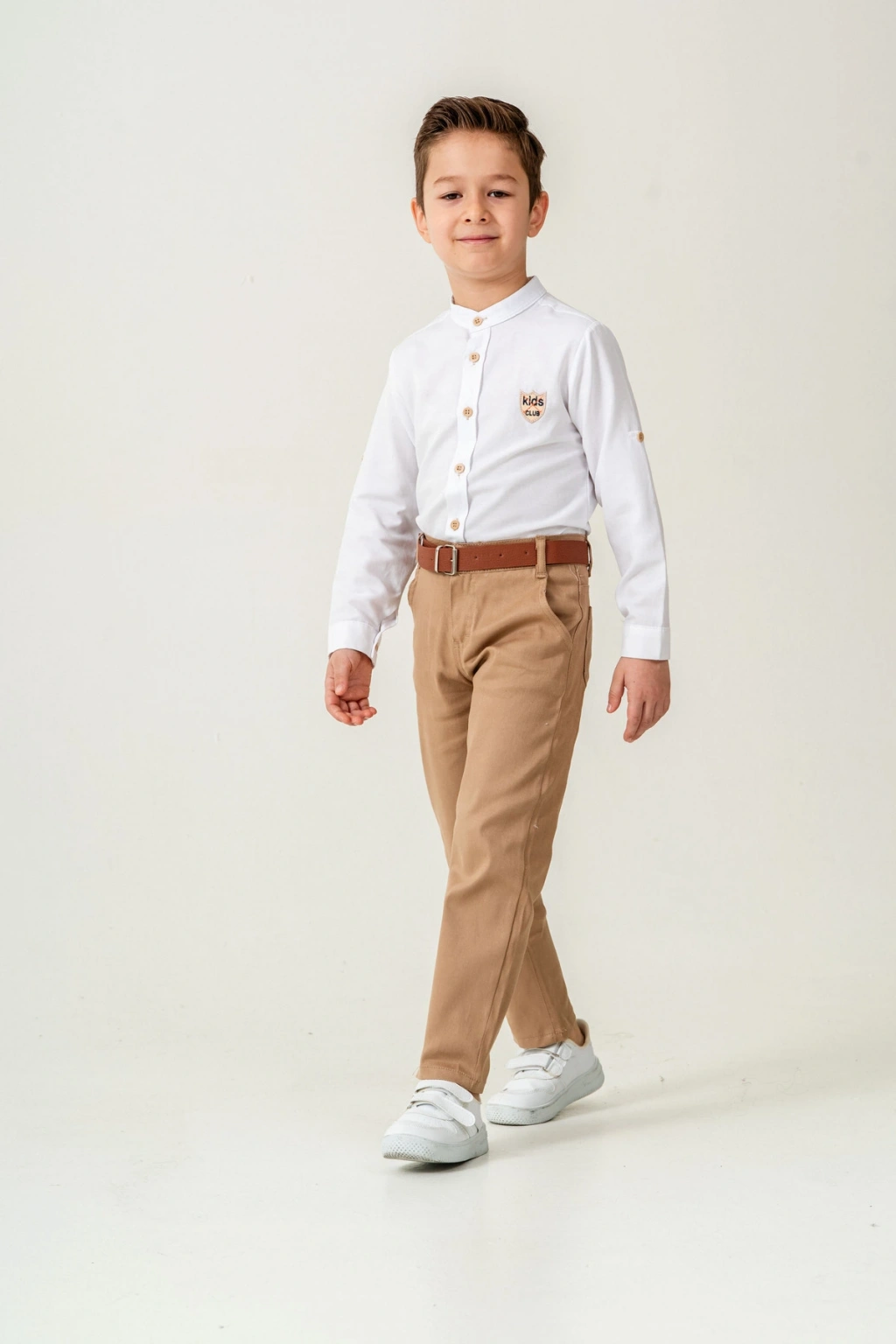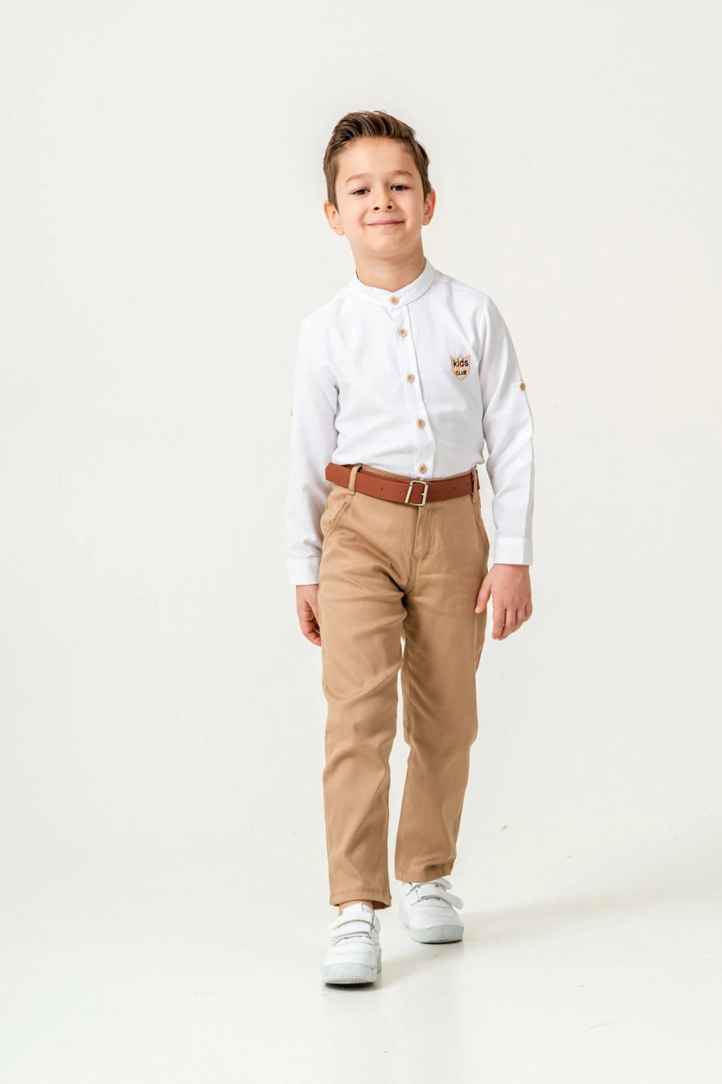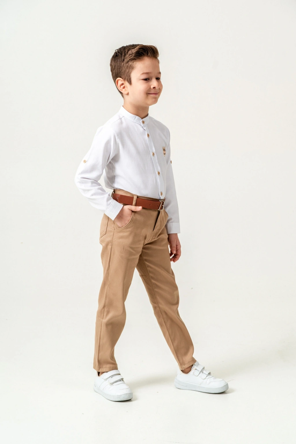 - Genç tarzını yansıtan, üç parçadan oluşan erkek çocuk takımında; hakim yaka gömlek, pantolon ve şık bir kemer yer alıyor.; ; - Mix nakış detaylarıyla zenginleştirilmiş bu takım, çocukların enerjisini ve stilini ön plana çıkarıyor.; ; - İnce dokusuyla rahatlık sunan pamuk materyali sayesinde gün boyu konfor sağlıyor.; ; - Boru paça tasarımı ile modern ve şık bir görünüm kazandırırken, düz kesimiyle hareket özgürlüğü tanıyor.; ; - Uzun kol uzunluğu ve standart kol tipi ile mevsim geçişlerinde ideal kullanım sunuyor.; ; - Uzun boy tasarımı ile hem rahatlık hem de şıklığı bir arada sunarken, dokuma kumaşı dayanıklılığı arttırıyor.; ; - %100 pamuk içeriğiyle cildi tahriş etmeden yumuşak bir dokunuş sağlıyor.; ; - Lounge/home ortamları için uygun olan bu takım, evde ya da dışarıda keyifli vakit geçirmek isteyen çocuklar için mükemmel bir seçim.