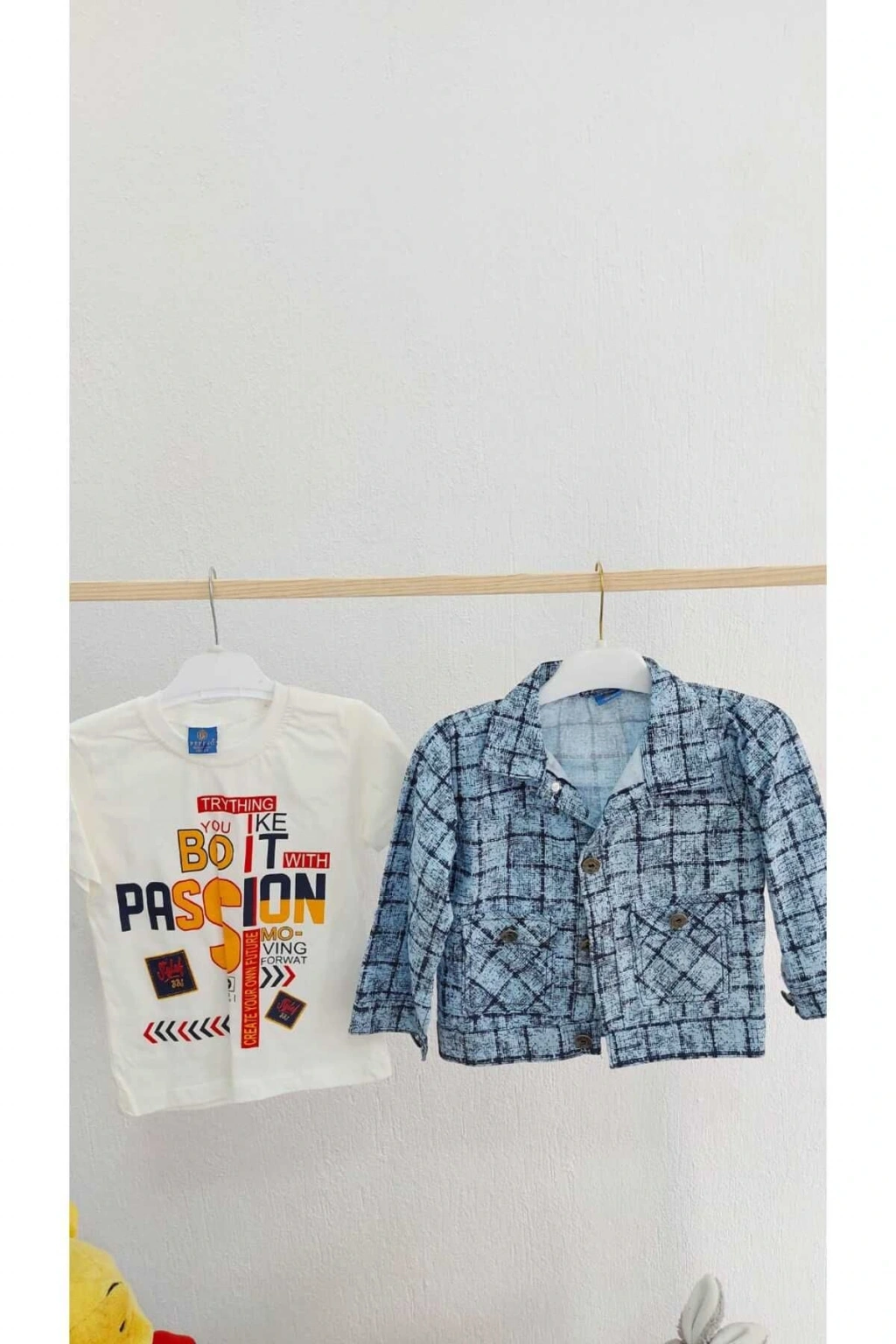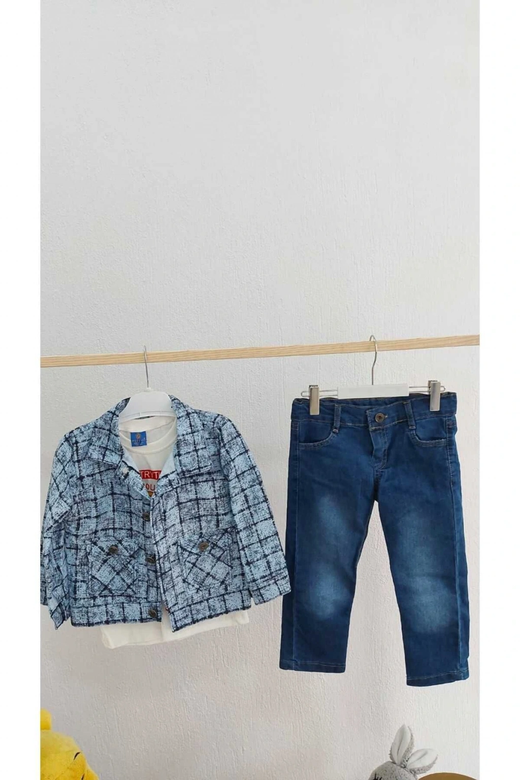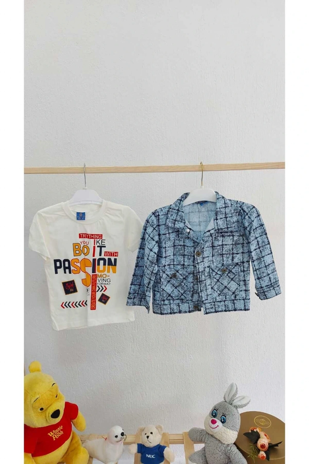 ERKEK ÇOCUK DESENLİ VE DÜZ GÖMLEK PAPYON VE SALOPET