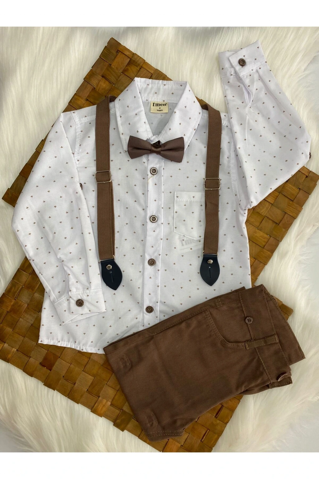 - Dokuma kumaş yapısı ile dayanıklılığı artırılmış, uzun süreli kullanım için idealdir.; - Yerli üretim olup, Türk malı gururunu yansıtan bir tasarıma sahiptir.; - Modern ve şık görünümüyle dikkat çeken slim fit kalıbı sayesinde rahat bir oturuş sunar.; - Normal boy kesimi ile her çocuğun vücut tipine uyum sağlayarak konforlu bir giyim deneyimi yaşatır.; - Canlı ve eğlenceli desenleriyle çocukların enerjisini yansıtırken, kahve rengi tonları da sofistike bir dokunuş katmaktadır.; - Papyon detayı ile resmi etkinliklerde veya özel günlerde şıklığı tamamlar; erkek çocuk modasına zarif bir katkıda bulunur.; - Çocukların hareket özgürlüğünü kısıtlamayan tasarımıyla aktif oyun saatlerinde bile rahatlık sağlar.