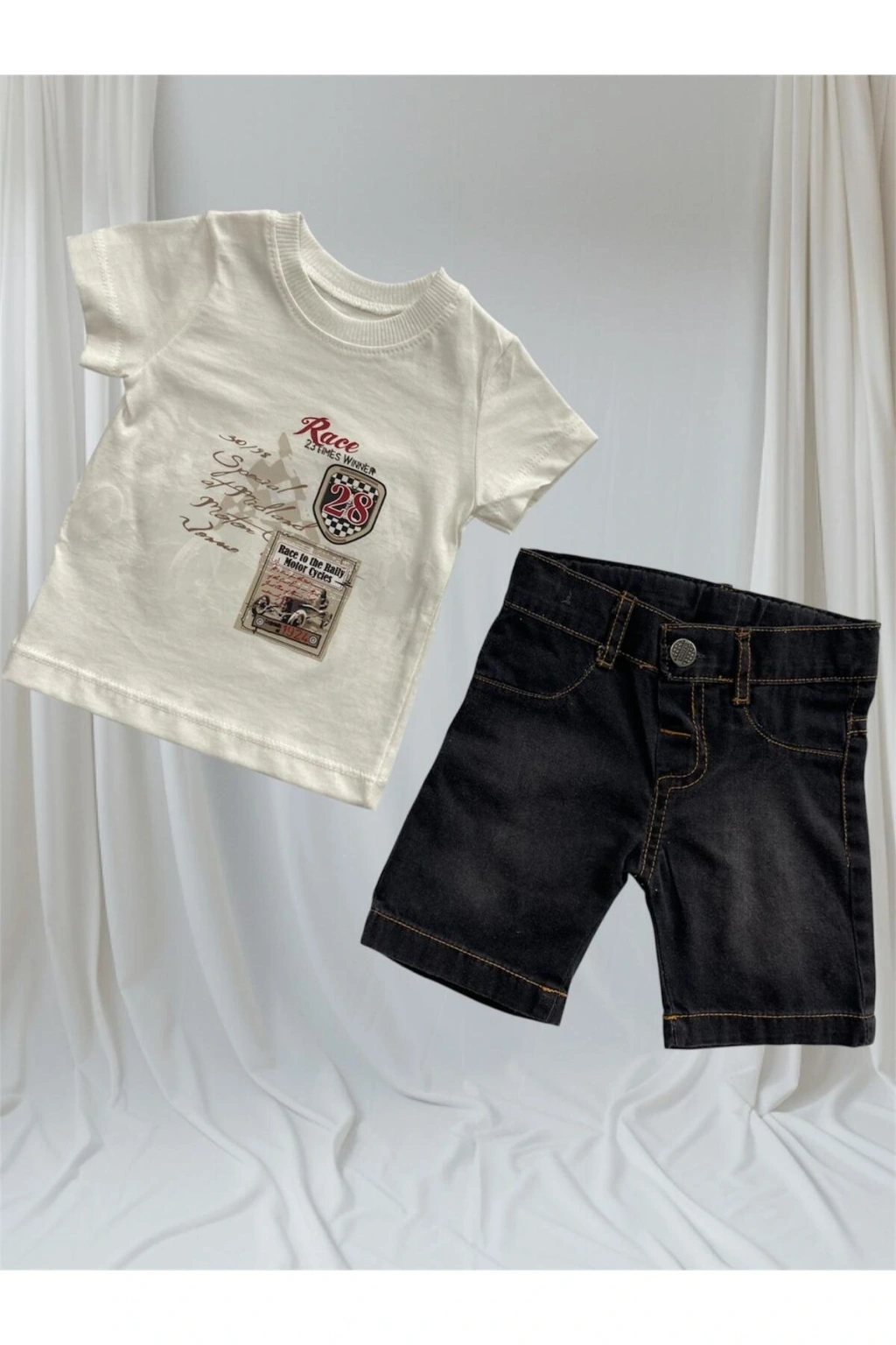 - Yumuşak dokusuyla çocukların rahat hareket etmesini sağlayan düz desenli kot şortlu takım.; - Erkek çocuklar için özel olarak tasarlanmış, hareket özgürlüğü sunan relaxed kalıp.; - Kısa boy kesimi ile yaz aylarında serinlik ve konfor sağlar.; - Dayanıklı dokuma kumaşı sayesinde uzun süreli kullanım imkanı sunar.; - Kolay kombinlenebilir yapısıyla yazlık gardıropların vazgeçilmezi olacak.