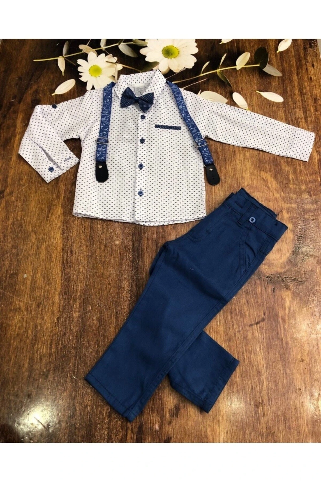 - Klasik papyon detayına sahip, şıklığı ve rahatlığı bir arada sunan erkek çocuk takım.; - Orta kalınlıkta kumaşı ile mevsim geçişlerinde ideal konfor sağlar.; - İlkbahar ve sonbahar ayları için uygun tasarımıyla dört mevsim giyilebilir.; - Boru paça kesimi sayesinde modern ve zamansız bir görünüm kazandırır.; - Kemerli yapısı ile hem stil sahibi hem de pratik kullanım imkanı sunar.; - Sade ve düz deseniyle kolayca kombinlenebilir; her türlü aksesuarla uyum sağlar.; - Rahat kalıbı sayesinde hareket özgürlüğünü kısıtlamaz ve gün boyu rahat etmenizi sağlar.; - Uzun boyu ile çocuğunuzun vücut hatlarını nazikçe sararak şık bir siluet oluşturur.; - Yerli üretim olup Türkiye'de üretilmiştir; yerel malzemelerle desteklenmiş kaliteyi yansıtır.; - Standart kol tipiyle günlük kullanım için idealdir; hareket serbestliği tanır.; - Uzun kol boyu mevsimsel değişikliklere karşı ekstra koruma sağlar.; - Bluz-pantolon alt-üst takım olarak tasarlanmıştır; hem üst hem de alt parçada eşit düzeyde stil sunar.