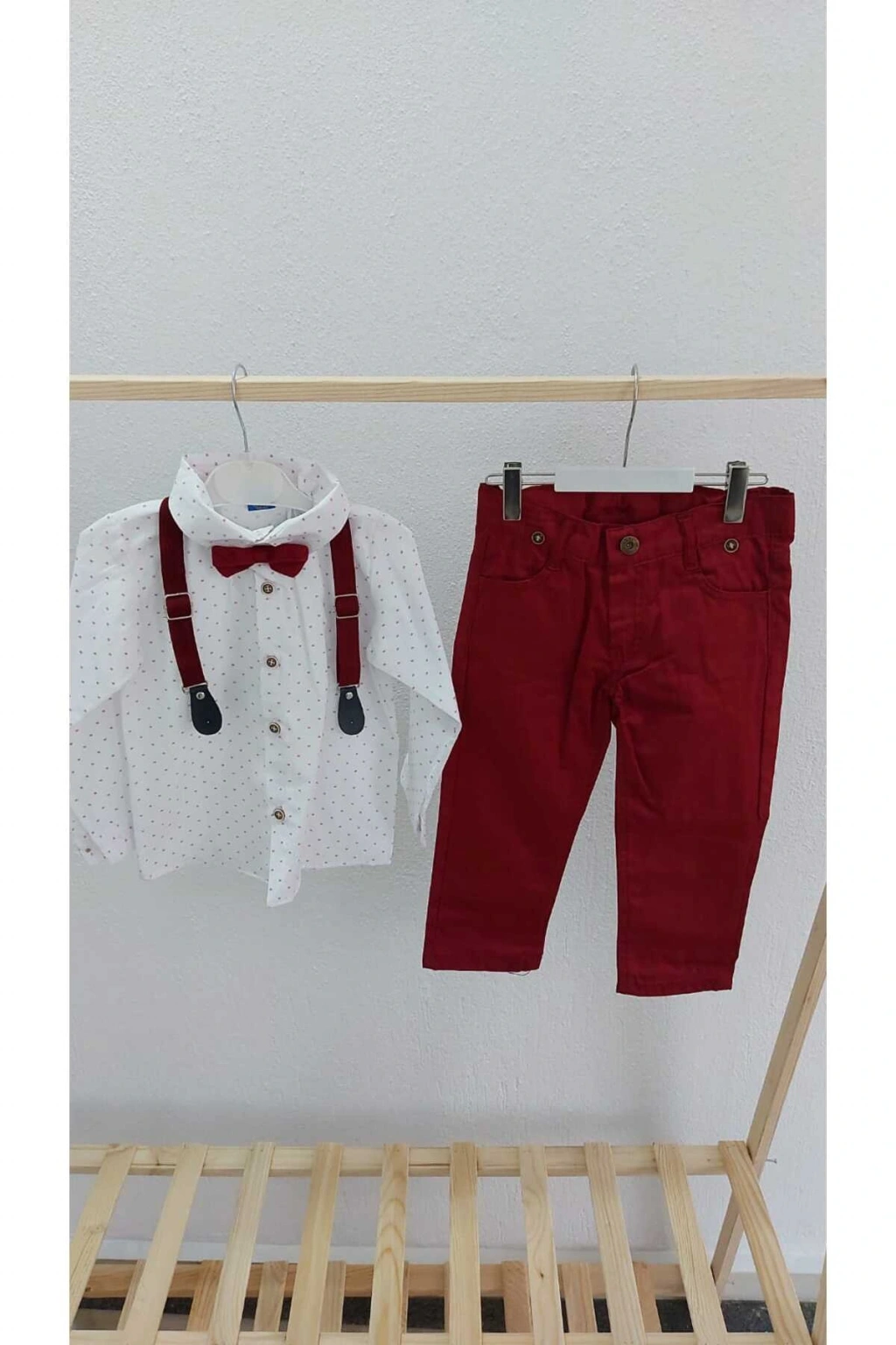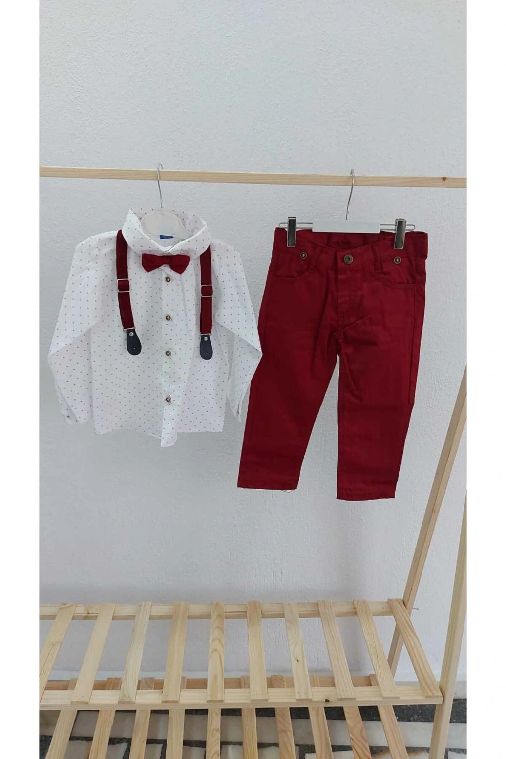 Çocuklar için özel olarak tasarlanmış, şık ve eğlenceli desenleriyle dikkat çeken papyon salopetli gömlek pantolon takım; Normal bel kesimi sayesinde rahat bir kullanım sunar ve gün boyu konfor sağlar; Dokuma kumaş yapısı ile dayanıklılık ve uzun ömürlü kullanım vaat eder; Slim kalıp tasarımı, modern ve şık bir görünüm kazandırırken vücut hatlarını nazikçe sarar; Belirtilmemiş boy seçeneği ile farklı vücut tiplerine uyum sağlayarak her çocuğun rahatça giyebilmesini mümkün kılar;