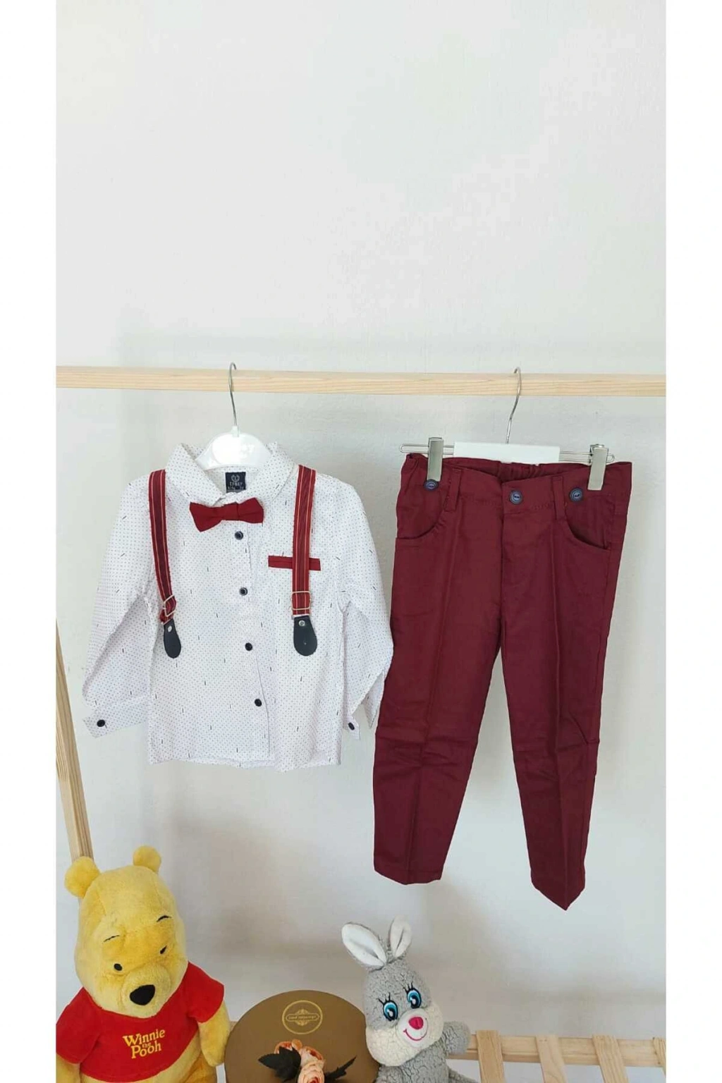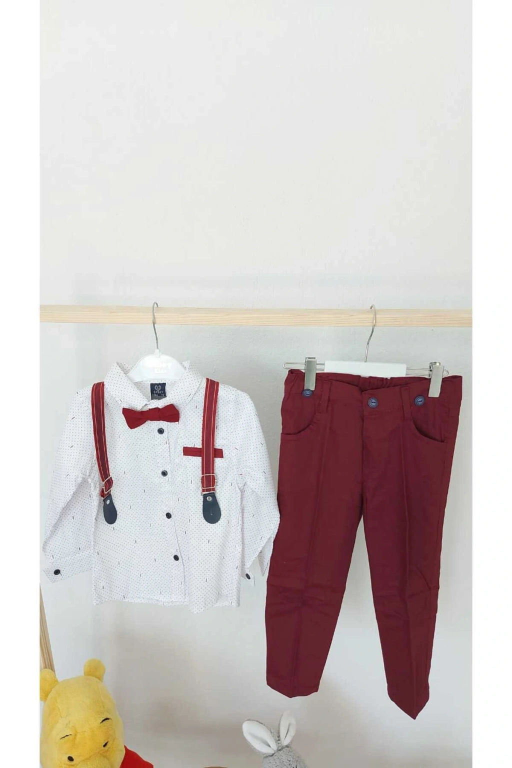 ERKEK ÇOCUK PAPYONLU SALOPETLİ GÖMLEK PANTOLON TAKIM ;