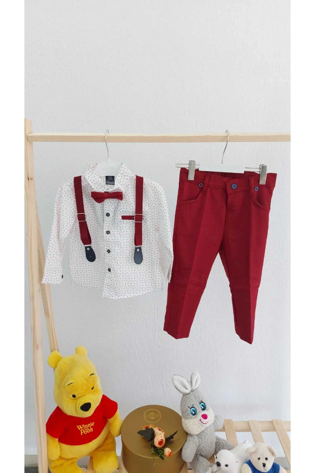 Erkek Çocuk Papyonlu Salopetli Gömlek Pantolon Takım