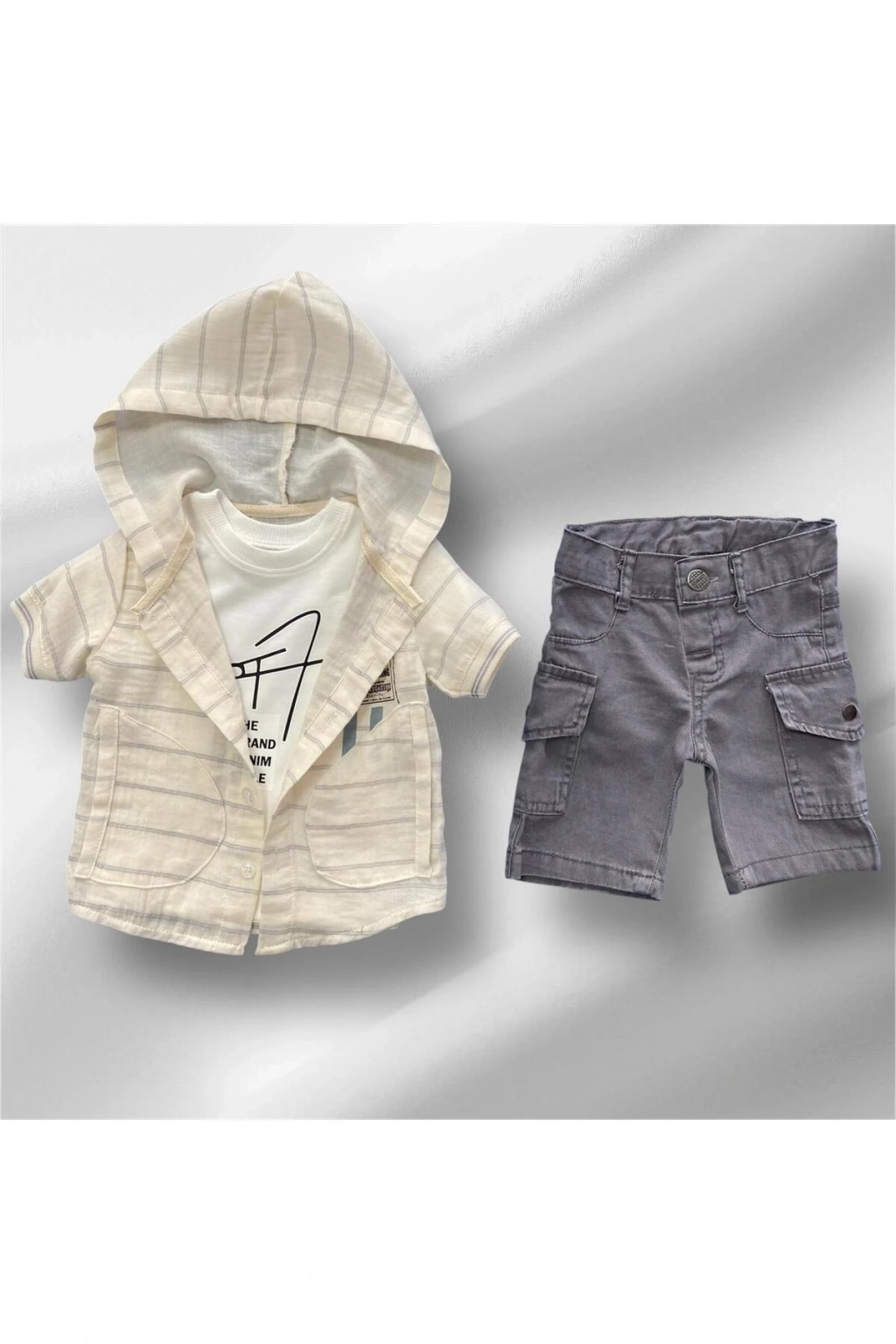 - Üç parçadan oluşan bu takım, çocukların rahat hareket etmesini sağlayacak şekilde tasarlanmıştır.; - Düz deseniyle sade ve şık bir görünüm sunar, her türlü yaz kombinine kolayca uyum sağlar.; - Çocukların yaş grubuna özel olarak üretilmiş olup, onların konforunu ön planda tutar.; - Relaxed kalıbı sayesinde gün boyu rahat bir kullanım imkanı tanır; ne çok dar ne de çok bol bir oturuşa sahiptir.; - Kısa boyu ile sıcak havalarda serinlik hissi verirken, şortlu yapısıyla pratik bir kullanım sunar.; - Dokuma kumaşı dayanıklılığı artırarak uzun süreli kullanım vaat eder ve kolay bakım avantajları sağlar.