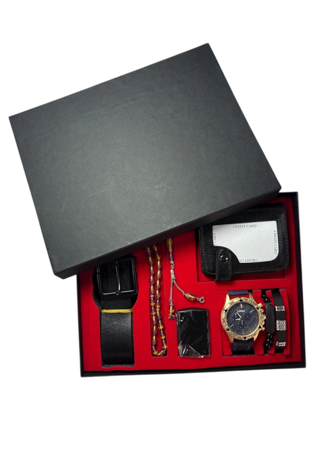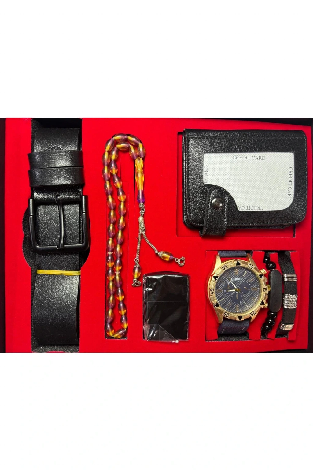 - Türkiye menşeli, kaliteli malzemelerden üretilmiş olup, yerel işçiliği destekler.; - Sade ve şık tasarımıyla her türlü kıyafetle uyum sağlar; düz deseni sayesinde zamansız bir tarz sunar.; - Kol saati, kartlık, çakmak, kemer ve bileklik gibi günlük kullanım için gerekli aksesuarları içeren set, pratiklik ve şıklığı bir arada sunar.;