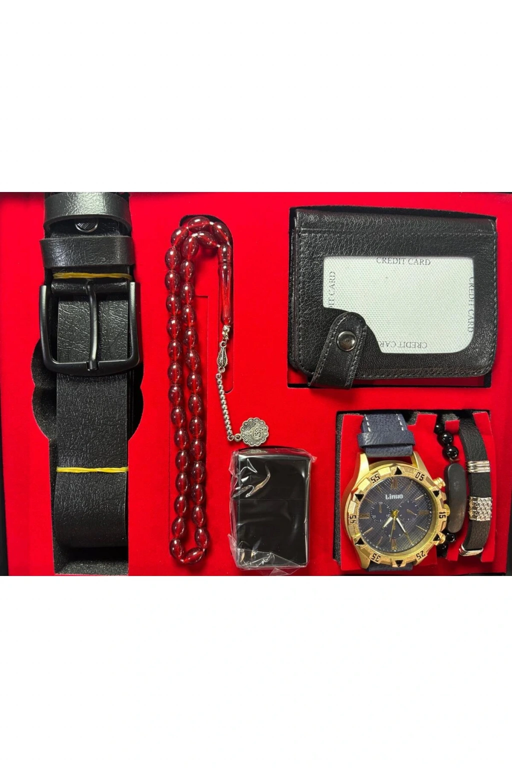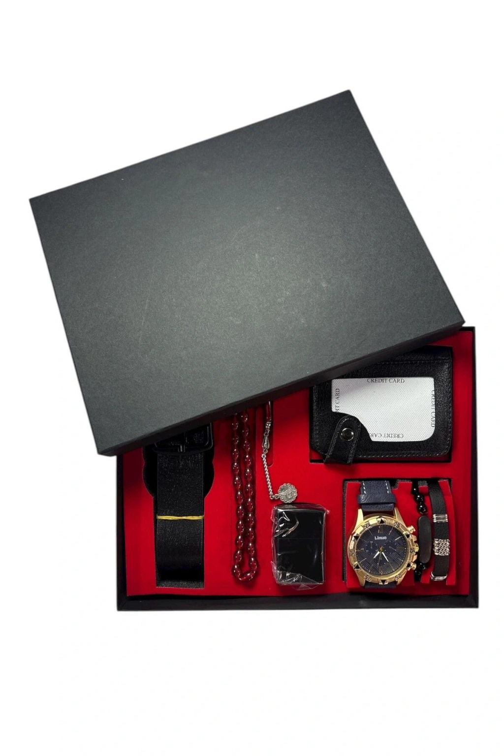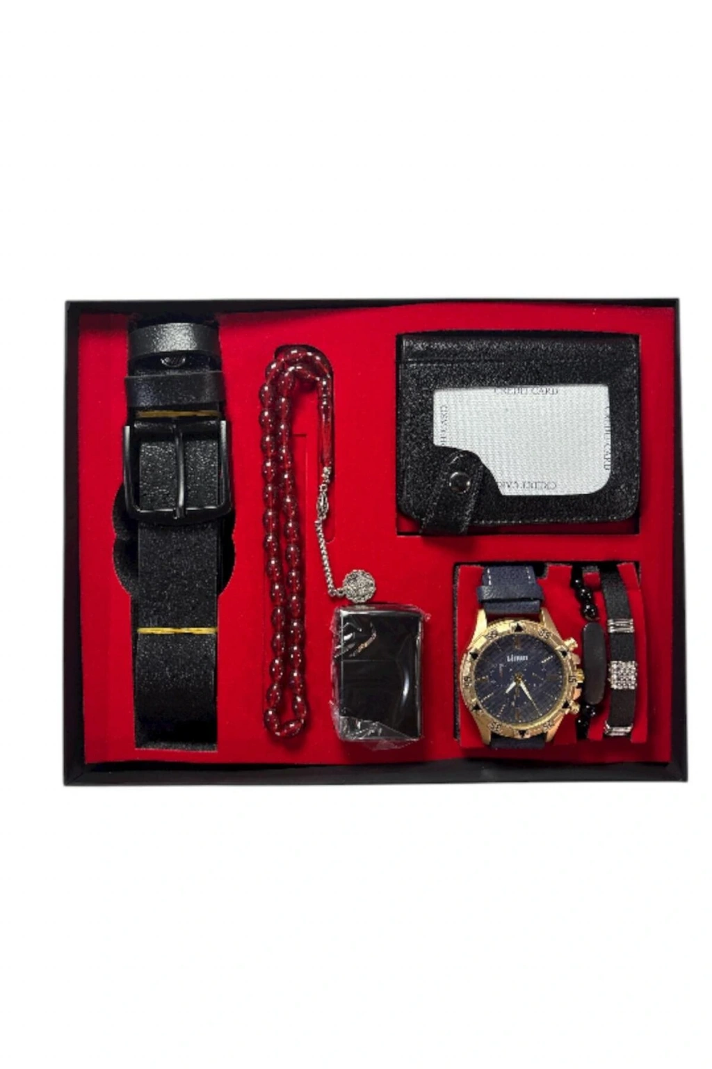 - Türkiye'de üretilen bu set, yerel işçiliği ve kaliteyi ön plana çıkarır.; - Sade ve şık tasarımıyla dikkat çeken düz desen, her türlü kıyafetle uyum sağlar.; - Kol saati, kartlık, çakmak, kemer ve bileklik gibi farklı aksesuarları bir arada sunarak günlük kullanım için idealdir.;