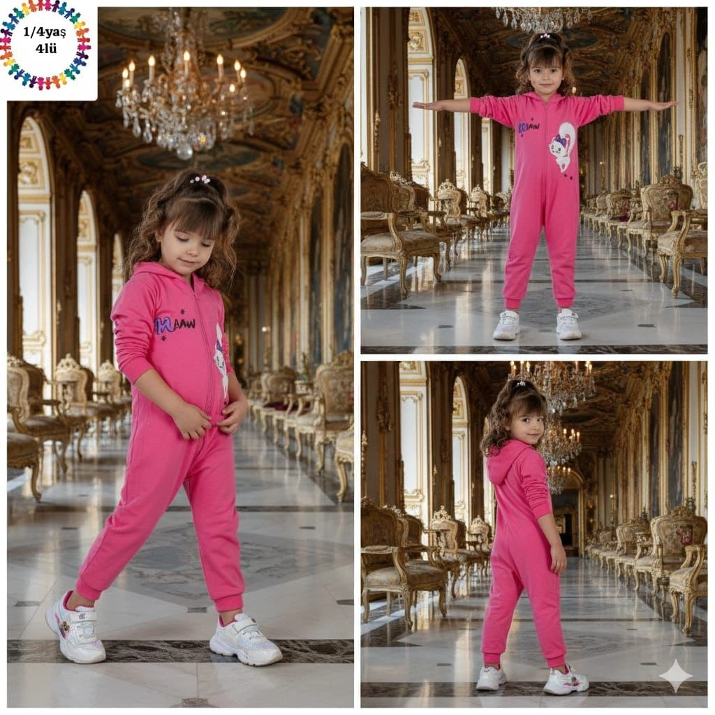 BİGÜMEX marka Fermuarlı & Kapüşonlu Çocuk Tulum, kız çocuklar için şık ve kullanışlı bir seçenektir.