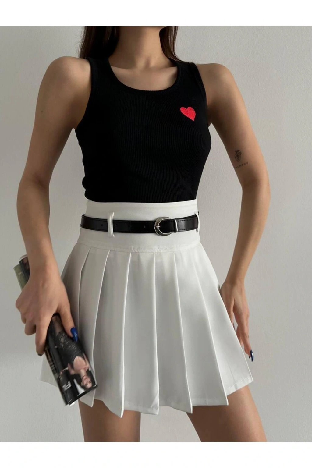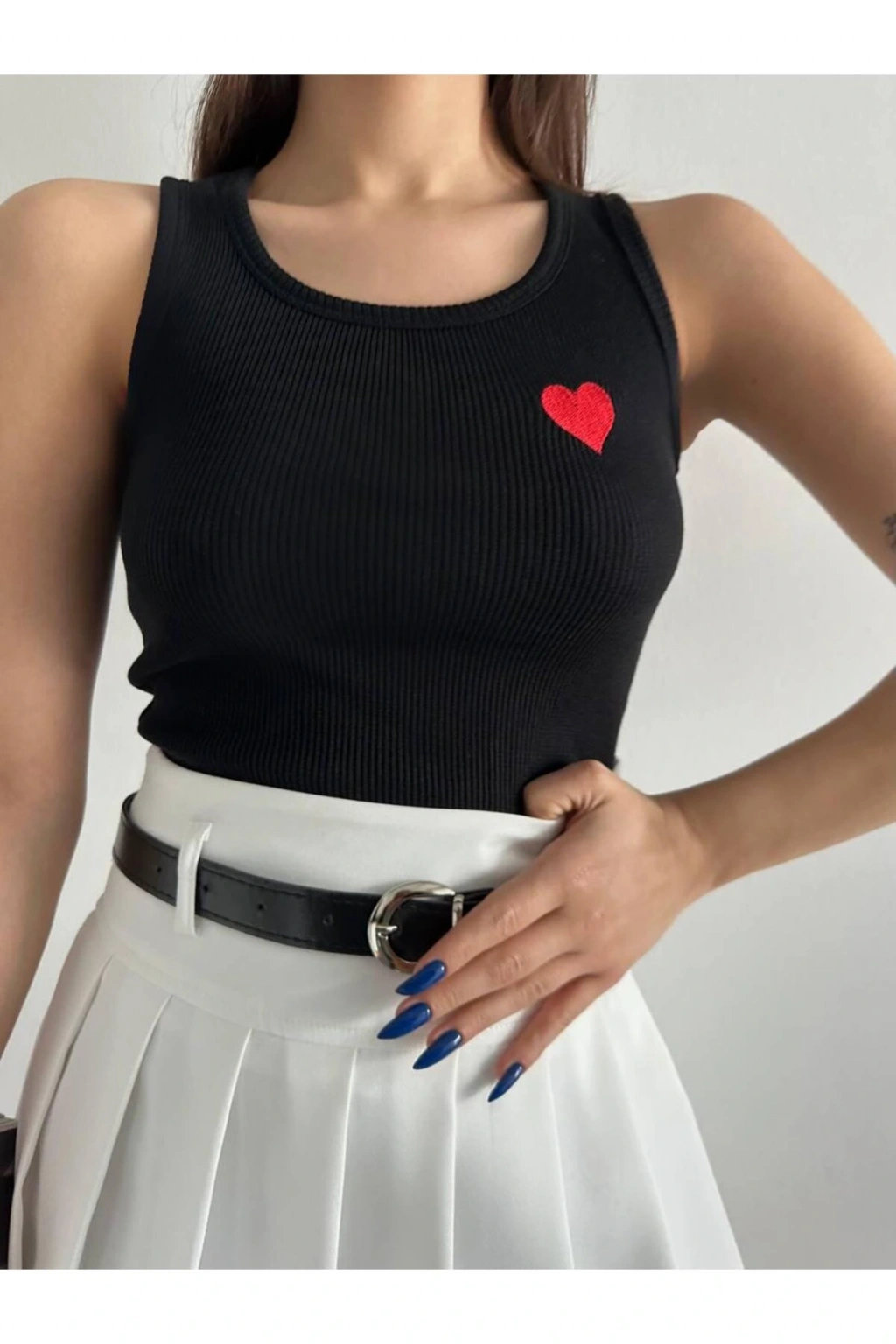 İnce askılı tasarımı ve kalp nakış detayıyla feminen bir görünüm sunan bu ürün, yaz aylarında gardırobunuzun vazgeçilmezi olacak.