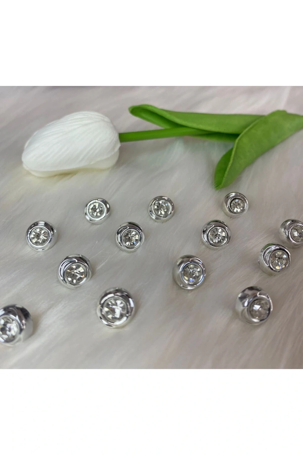 - Gümüş malzeme ile üretilmiş, uzun ömürlü ve dayanıklı kullanım sunar.; - Kristal taş detayları ile göz alıcı bir parlaklık ve şıklık katar.; - 18 boyutundaki düğmeler, çeşitli aksesuarlarda kolayca kullanılabilir.; - 10 adet set halinde sunulan bu ürün, ihtiyacınız olan miktarı karşılar.; - Menşei Türkiye'den gelen bu ürün, yerel üretim kalitesini yansıtır.