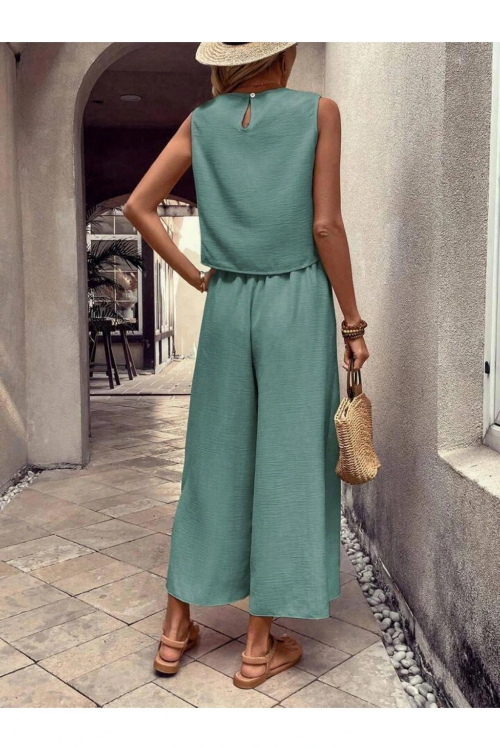 Kadın Aerobin Kumaş Geniş Paça Pantolonlu Takım