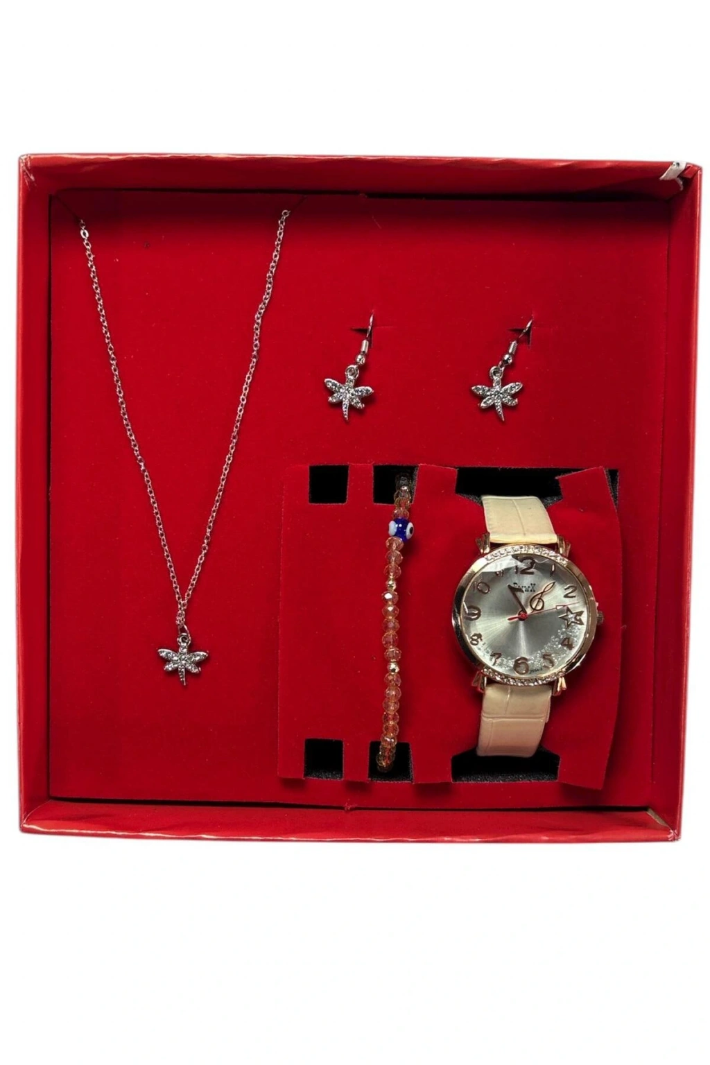 Kadın Kol Saati Bileklik Kolye Küpe Seti Hediyelik Set