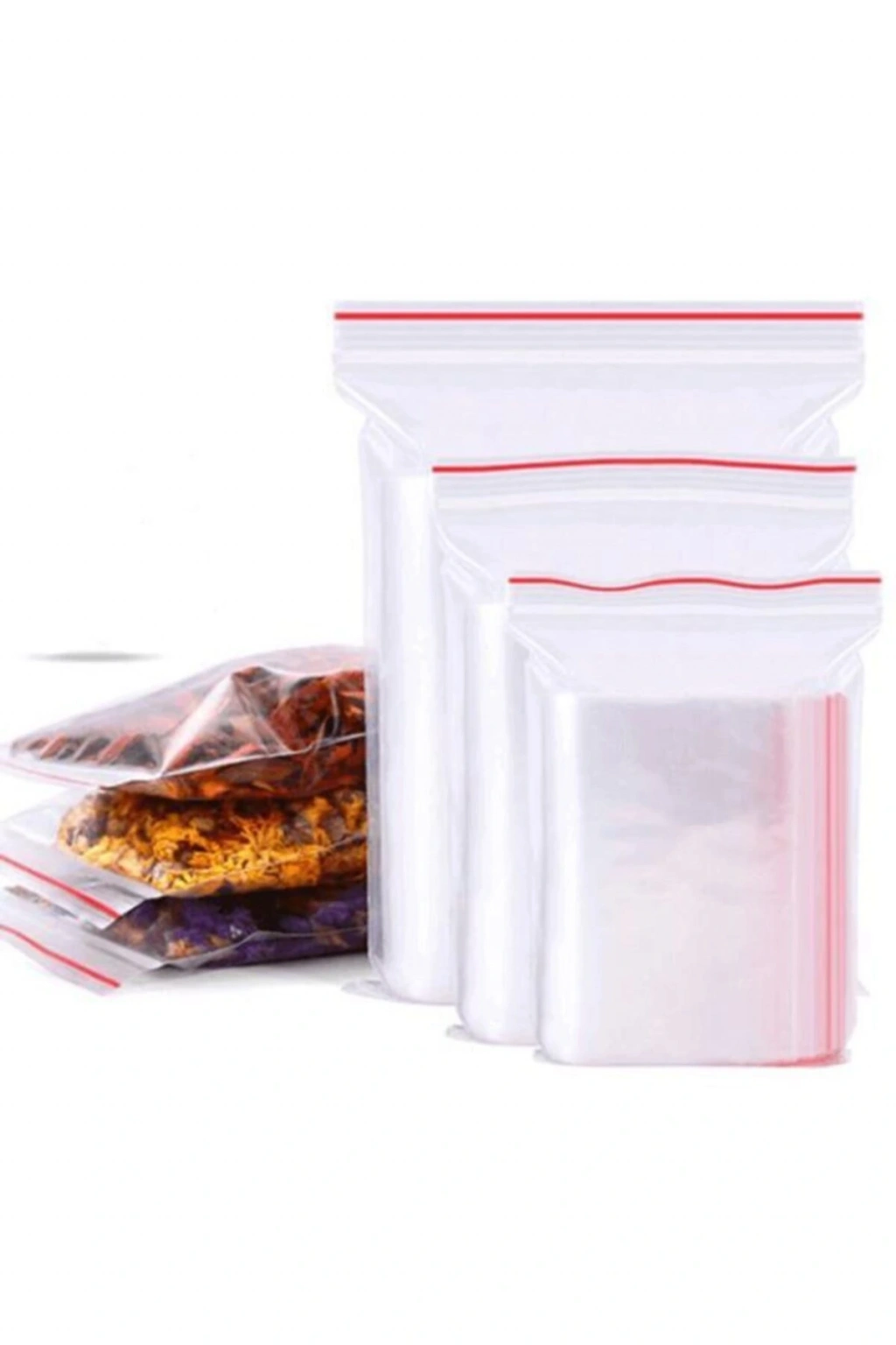 KİLİTLİ NAYLON TORBA Paket içi 100 adet bulunur. ; Ağız kısmındaki kilit sayesinde dışarı ile teması keser. ; Gıda ile temasa uygundur. ; Nerelerde kullanılır? Kışlık yiyeceklerinizi buzdolabında dondurucuda kilitli şeffaf naylon torba ile rahatlıkla saklayabilir parçalara bölerek düzenlenmesinde kullanılabilirsiniz. ; Tuhafiye alanında ufak ürün ve malzemelerin düğme, iplik gibi çeşitli ürünlerin paketlenmesinde kullanabilirsiniz. ; Sanayi alanında çeşitli ufak boyutlardaki vida, somun ve çeşitli aksamların paketlenmesi ve muhafazasında kullanabilirsiniz. ; Elektronik ürünlerin paketlerinin içerisinde yardımcı ekipmanların paketlenmesinde kullanılmaktadırlar. ; Gıda alanında tuz, şeker ve baharat gibi gıdaların paketlenmesinde kullanabilirsiniz.;