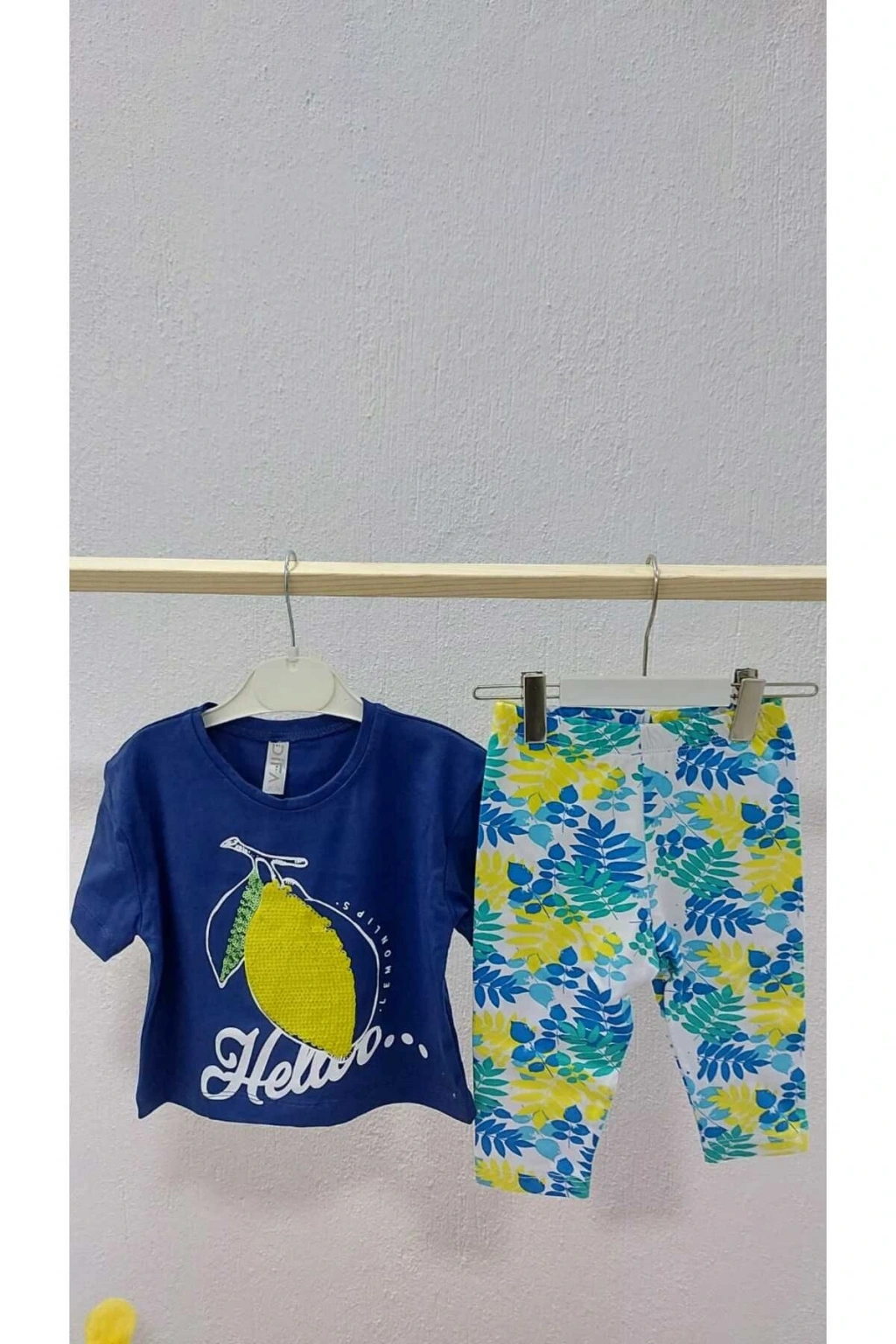 KIZ ÇOCUK, PAMUK, LİMON DESENLİ - PULLU Alt-Üst Takım