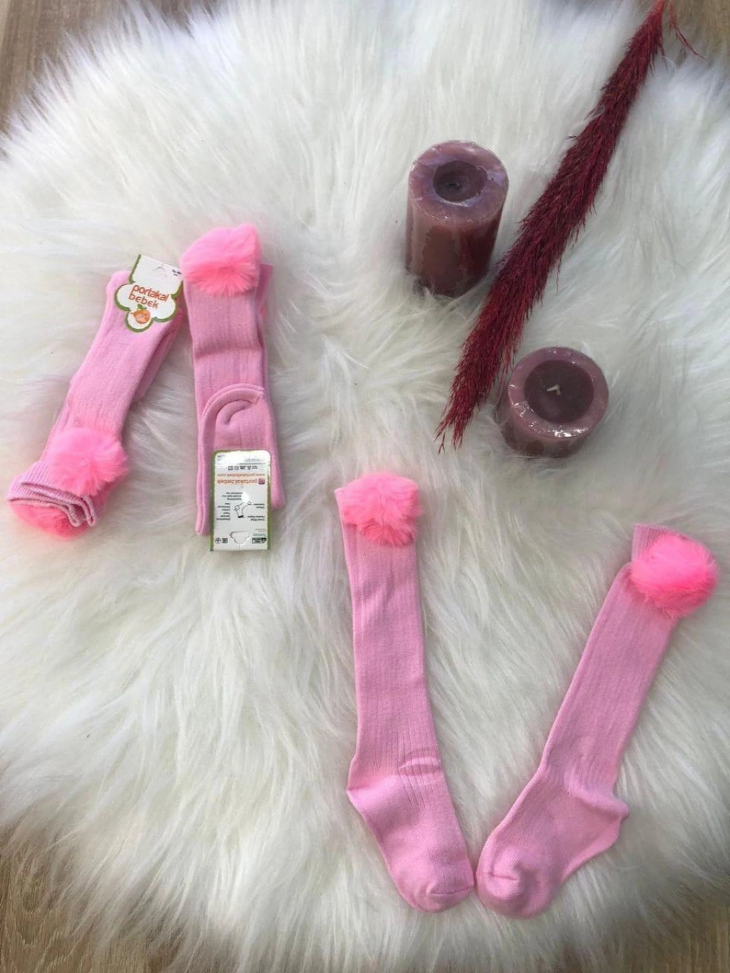 BİGÜMEX marka kız çocuk ponponlu dizaltı çorap, minik prenseslerin tarzına tarz katıyor.