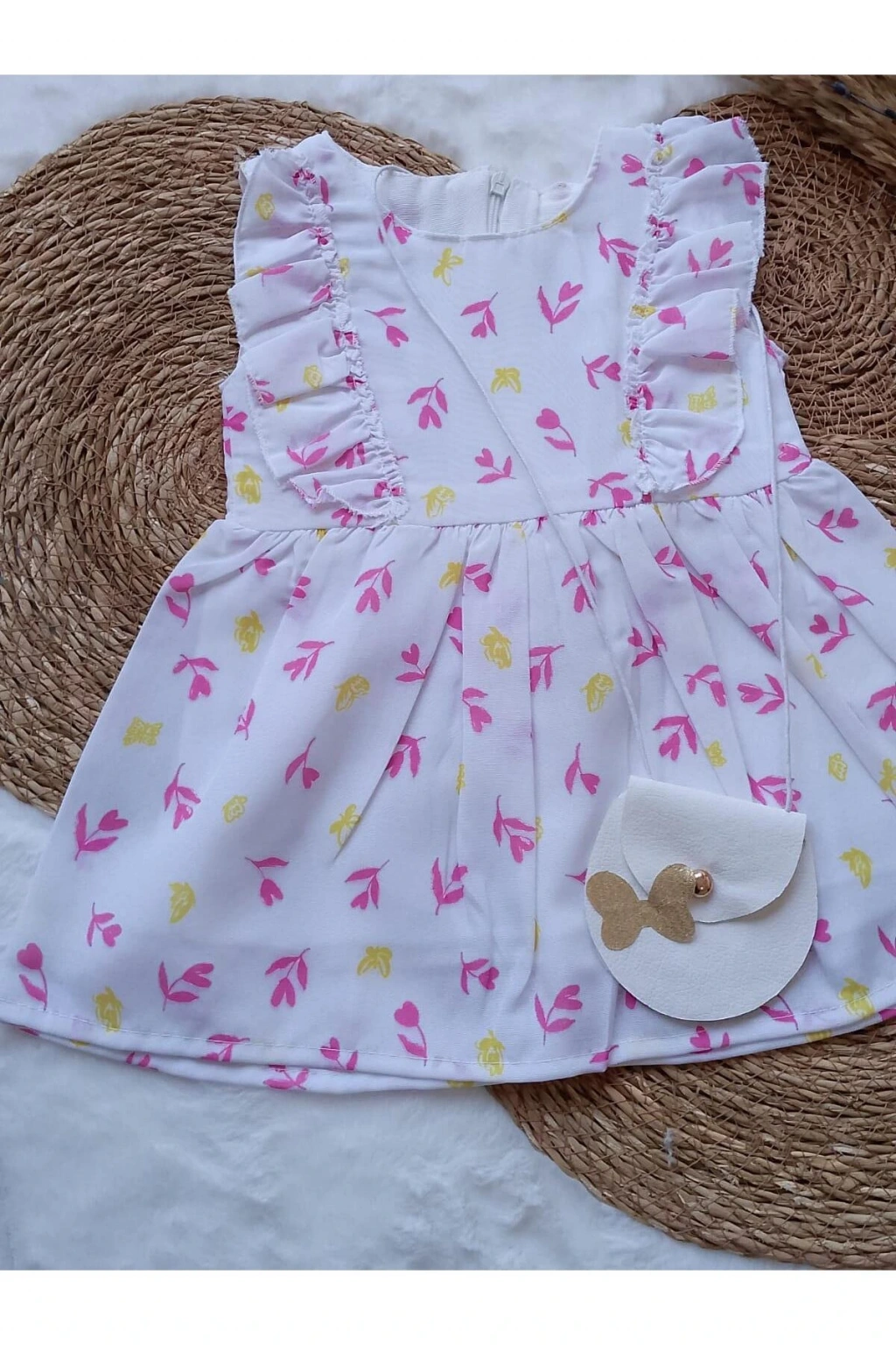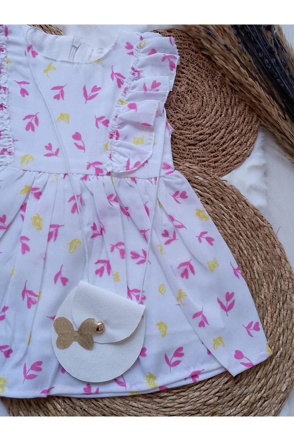 - Canlı yeşil rengiyle dikkat çeken bu elbise, çocukların enerjisini yansıtır.; - Çocuklar için özel olarak tasarlanmış olup, onların rahat hareket etmelerine olanak tanır.; - Kutusuz olması sayesinde ekstra ambalaj atıklarından tasarruf ederken, doğaya duyarlı bir tercih yapmış olursunuz.; - Bisiklet yaka tasarımı ile modern ve şık bir görünüm sunar.; - Cepsiz yapısı pratik kullanım sağlar; küçük eşyalar için ekstra ceplere ihtiyaç duymazsınız.; - Kolsuz tasarım, sıcak günlerde serinlik hissi verirken yaz ayları için idealdir.; - Kemersiz olması sayesinde kolay giyilip çıkarılabilir ve farklı stiller yaratma imkanı tanır.; - Dokuma kumaş tipi dayanıklılığı artırırken, 2 iplik şardonlu dokuma detayı konforlu bir kullanım vaat eder.; - Astarsız yapısı hafifliğiyle ön plana çıkarken, slim silueti vücut hatlarını nazikçe sararak zarif bir duruş sergiler.; - Type 1 yıkama talimatına uygun şekilde bakım yapıldığında uzun süre ilk günkü gibi kalacaktır.; - Pamuklu materyali cildi tahriş etmeden yumuşaklık sağlar ve nefes alabilir özelliktedir.; - Çiçekli deseniyle neşeli ve eğlenceli bir stil oluştururken, standart boy kesimiyle her yaş grubuna hitap eder.; - Türkiye menşeli üretim süreciyle yerel sanayimize destek vermiş olursunuz.; - Slim kalıp seçeneğiyle modern ve şık bir görünüm kazandırırken aynı zamanda rahat hareket etme özgürlüğü sunar.; - 1 yaş bedeniyle minik prenseslerinize mükemmel uyum sağlayacak şekilde tasarlanmıştır.