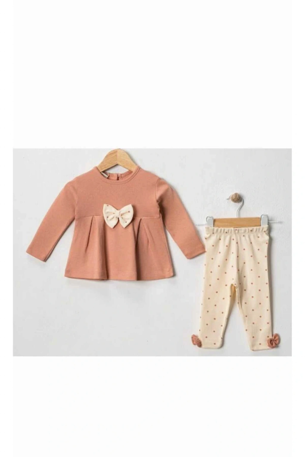 Kurdeleli Kız Bebek 2Li Taytlı Takım