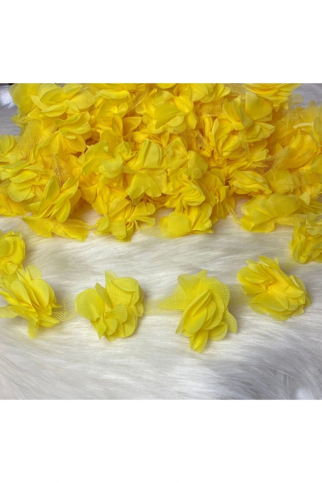 - Lazer kesim teknolojisi ile üretilen bu şifon çiçekler, her detayda kusursuz bir görünüm sunar.; - 12 adet set halinde sunulan bu ürünler, çeşitli dekorasyon projelerinizde kolayca kullanıma hazır hale gelir.; - 0-49 metre arasında değişen metraj seçenekleriyle, ihtiyacınıza uygun uzunlukta şifon çiçekler elde edebilirsiniz.; - Menşei Türkiye olan bu şifon çiçekler, yerel kaynaklı malzemelerle üretilerek sürdürülebilir moda anlayışına katkı sağlar.