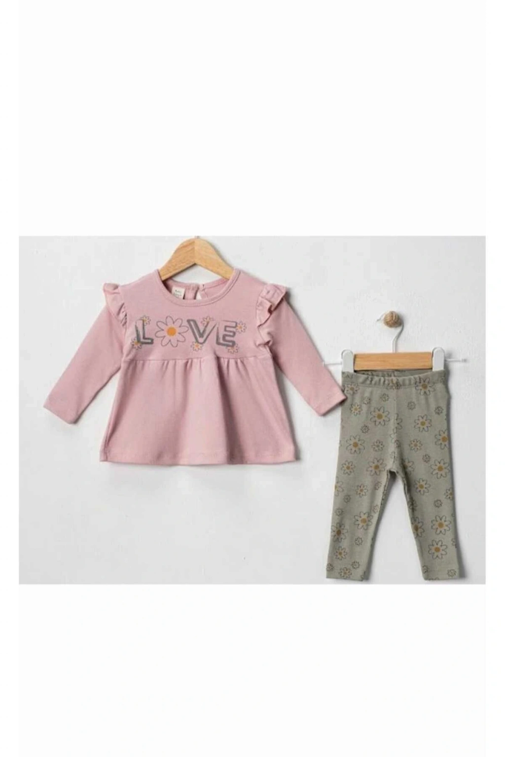Love Baskılı Kız Bebek 2Li Taytlı Takım