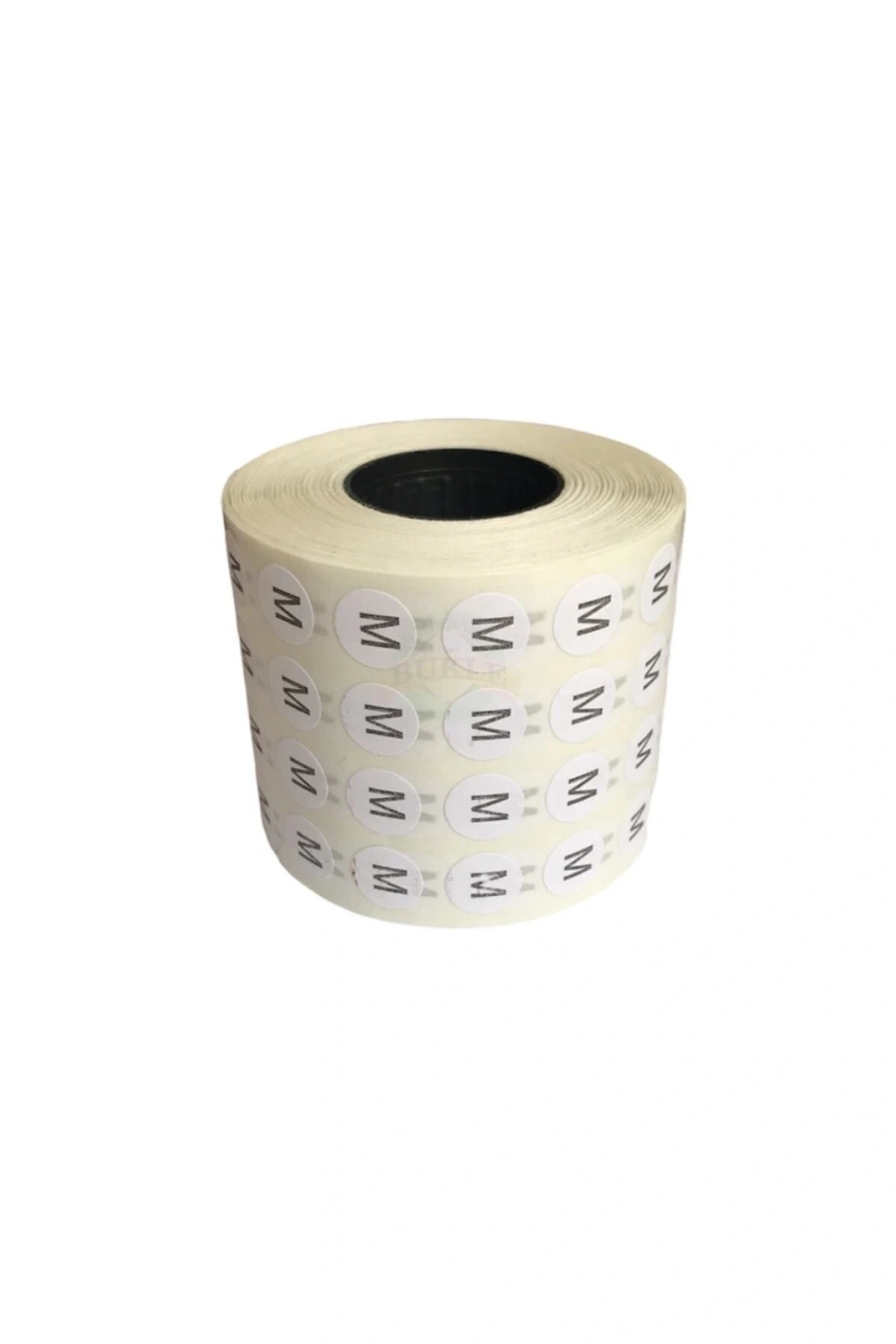 M beden yapışkanlı etiket; Beden sticker etiket Yuvarlak şeklindedir; Çapı 1 cmdir; 1 rulosunda 5000 adet bulunmaktadır;