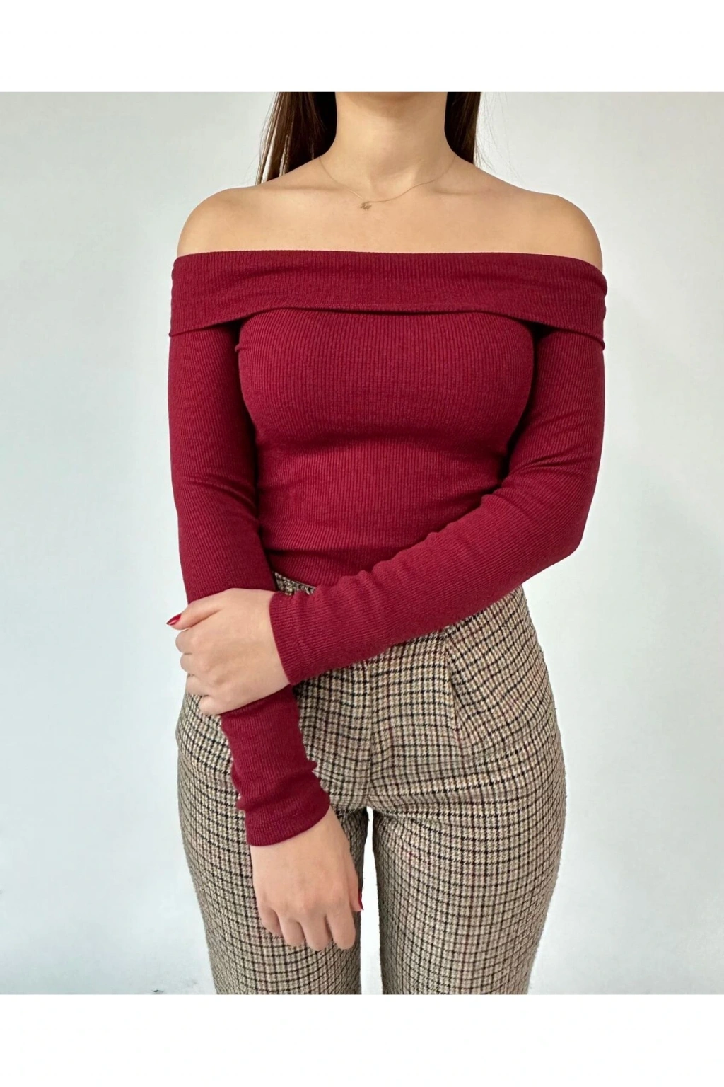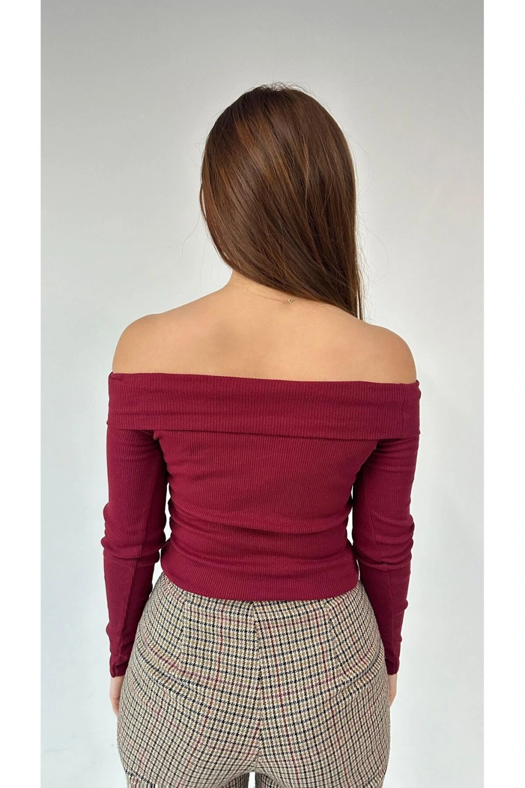 Bordo Omuz Pencereli Kaşkorse Crop