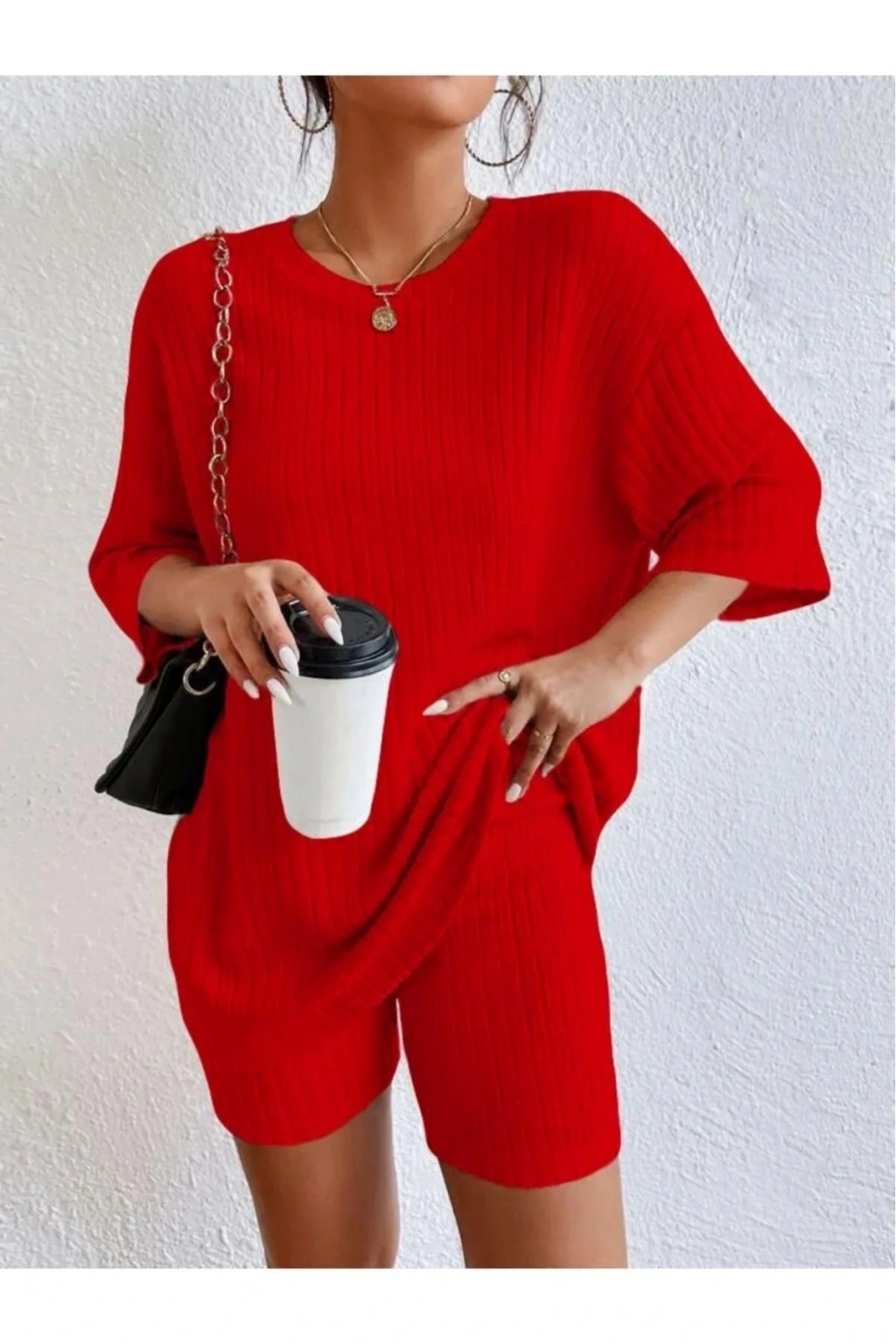 - Rahat kesimi ile günlük kullanım için ideal, likralı kumaştan üretilmiş kısa kollu şortlu alt üst takım.; - Her yaş grubuna hitap eden, yetişkinlerin de rahatlıkla tercih edebileceği tasarımıyla dikkat çeker.; - Sade ve şık görünümüyle her ortama uyum sağlayan düz deseni sayesinde kolayca kombinlenebilir.; - Esnek yapısı sayesinde vücut hatlarınıza mükemmel uyum sağlayarak konforlu bir deneyim sunar.; - Boyut belirtilmemiş olmasına rağmen, farklı bedenlere uygun olarak tasarlanmıştır; böylece geniş bir kullanıcı kitlesine hitap eder.; - Türkiye'de üretilmiş olmasıyla yerel üretim avantajlarından faydalanırken kalite standartlarına da sahip olduğunu garanti eder.