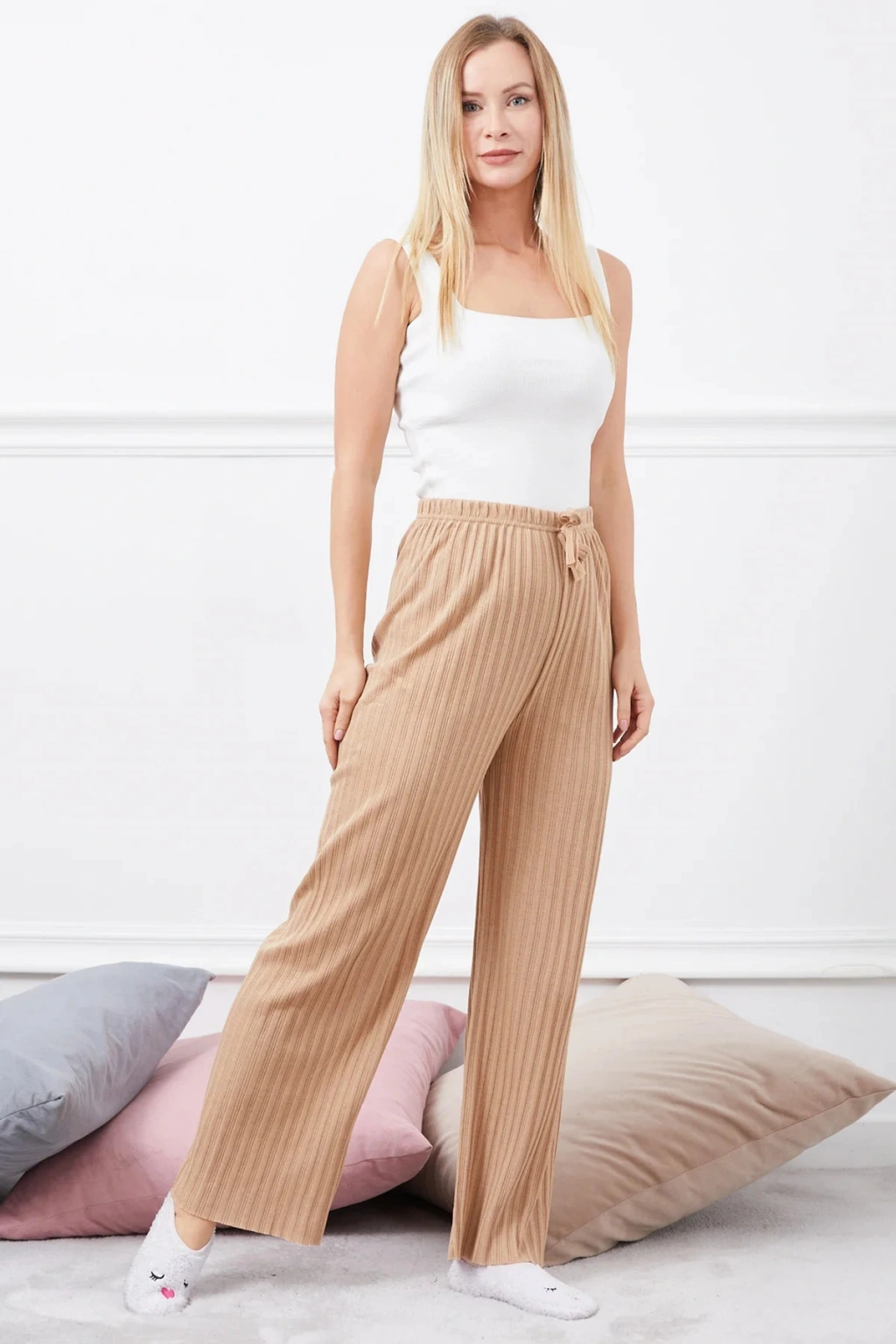 - Her mevsim rahatlıkla tercih edebileceğiniz pijama, tüm sezonlara uygun tasarımıyla dikkat çeker.; - Tekli paket içeriği sayesinde kolayca satın alınabilir ve hemen kullanmaya başlayabilirsiniz.; - 30 derecede yıkama talimatına uyarak pijamanızın uzun ömürlü olmasını sağlayabilirsiniz.; - İki iplik dokuma tipi ile dayanıklılığı artırılmış, yumuşak dokusuyla konfor sunar.; - Tüm yaş gruplarına hitap eden geniş beden skalasıyla herkes için idealdir.; - Kadın ve kız çocukları için özel olarak tasarlanmış bu pijama, şıklığı ve rahatlığı bir arada sunar.; - Yetişkinlerin de tercihi olan bu model, regular boy kesimiyle vücuda tam oturur.; - Normal bel yüksekliği sayesinde gün boyu rahat hareket etme olanağı tanır.; - Dokuma kumaşı kaliteyi hissettirirken aynı zamanda nefes alabilir yapısıyla konfor sağlar.; - Çizgili deseniyle modern ve dinamik bir görünüm kazandırırken, şerit detaylarıyla zarif bir dokunuş ekler.; - Homewear ortamında evde geçirilen zamanları daha keyifli hale getiren bu pijama, uzun paça boyu ve bol paça tasarımına sahiptir.