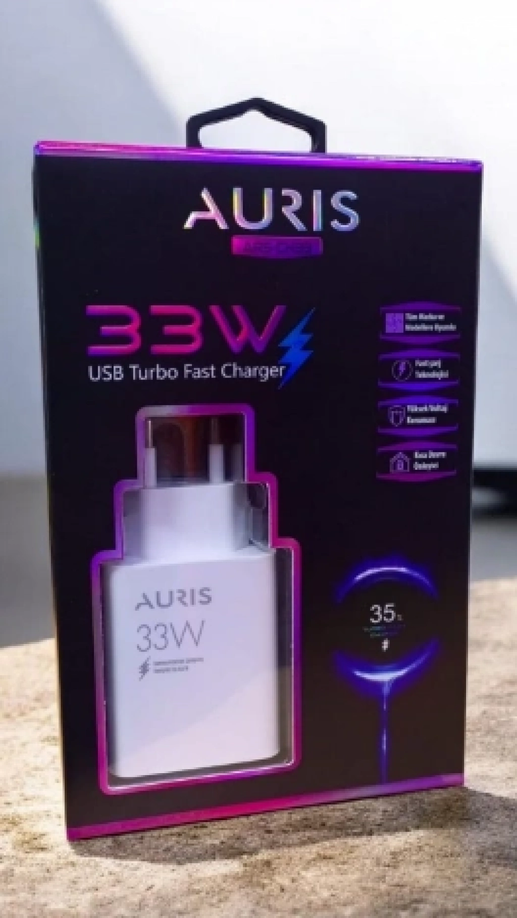 AURIS-CH33 USB Turbo Fast Charger, elektronik cihazlarınızı hızlı ve güvenli bir şekilde şarj etmenizi sağlar. 33W gücüyle yüksek performans sunan bu şarj cihazı, tüm marka ve modellerle uyumlu bir adaptör ile birlikte gelmektedir.