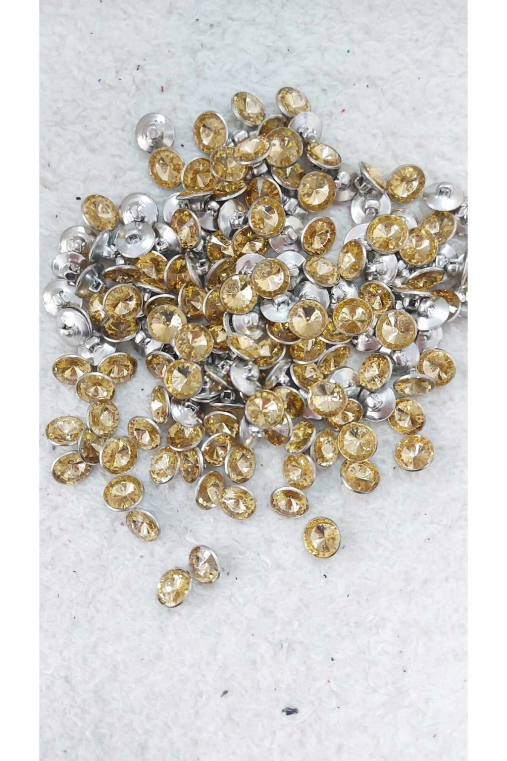 - Altın sarı metalize alttan ayaklı tasarımı ile şıklığı ve zarafeti bir arada sunar.; - 1 cm çapında ve 18 boy ölçüsüyle, çeşitli abiyelerde ve düğün elbiselerinde kolayca kullanılabilir.; - 11 mm kalınlığındaki bu düğme, dayanıklılığı ve estetiği ile öne çıkar.; - 20 adetlik paketi sayesinde birden fazla parça ihtiyacınızda pratik bir çözüm sunar.; - Menşei olarak Türkiye'de üretilmiş olması, yerel üretim kalitesini ve güvenilirliğini temsil eder.