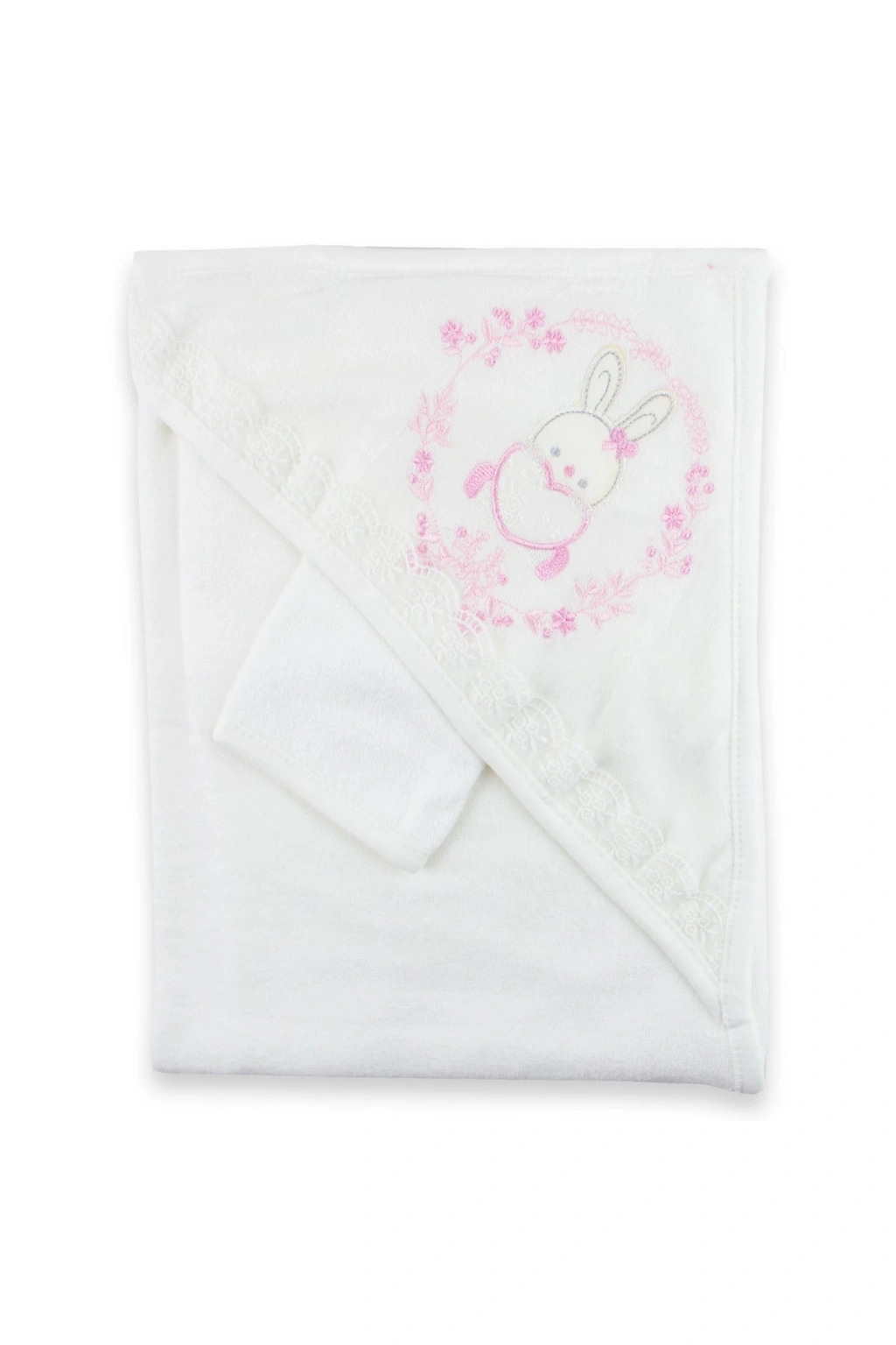 Tek parça olarak sunulan bu banyo havlusu, pratik kullanım için idealdir; Sevimli tavşan nakışları ile süslenmiş tasarımı, bebeğinizin banyo zamanını eğlenceli hale getirir; Dantel detayları ile zenginleştirilmiş yapısı, şıklığı ve zarafeti banyo rutinine taşır;