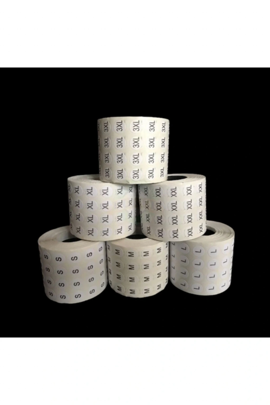 XXL beden yapışkanlı etiket; Beden sticker etiket Yuvarlak şeklindedir; Çapı 1 cmdir; 1 rulosunda 5000 adet bulunmaktadır;