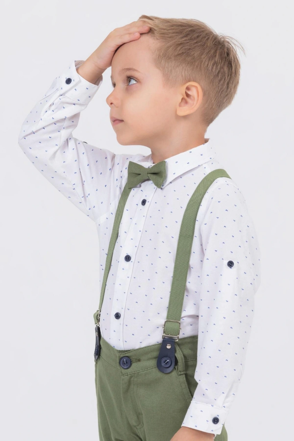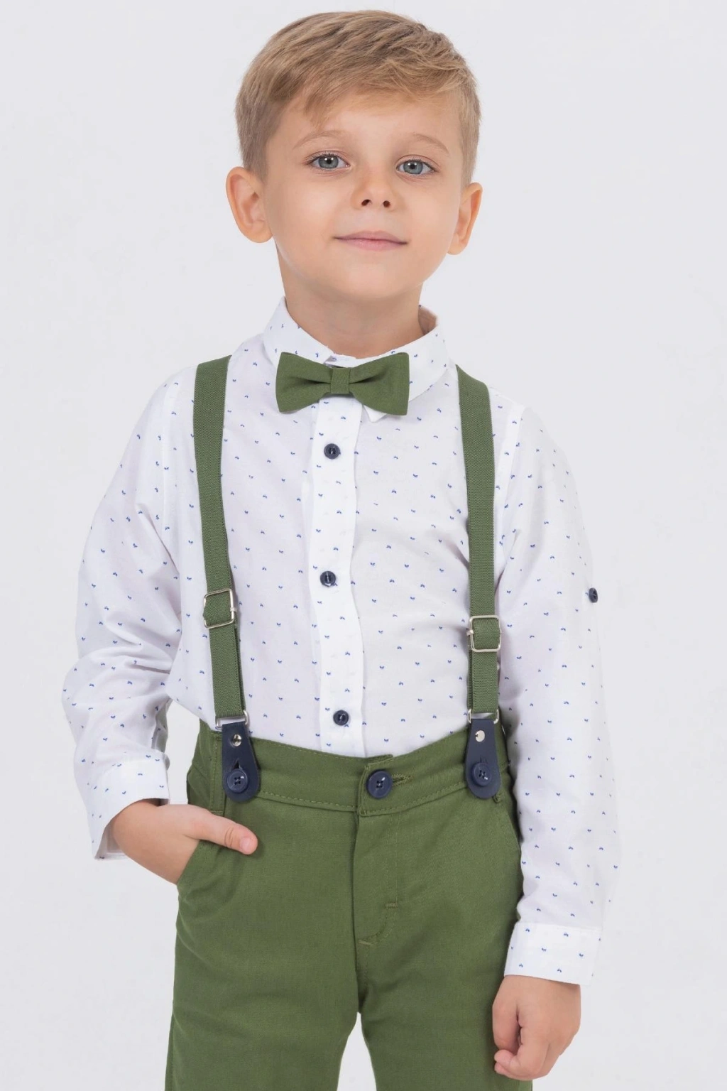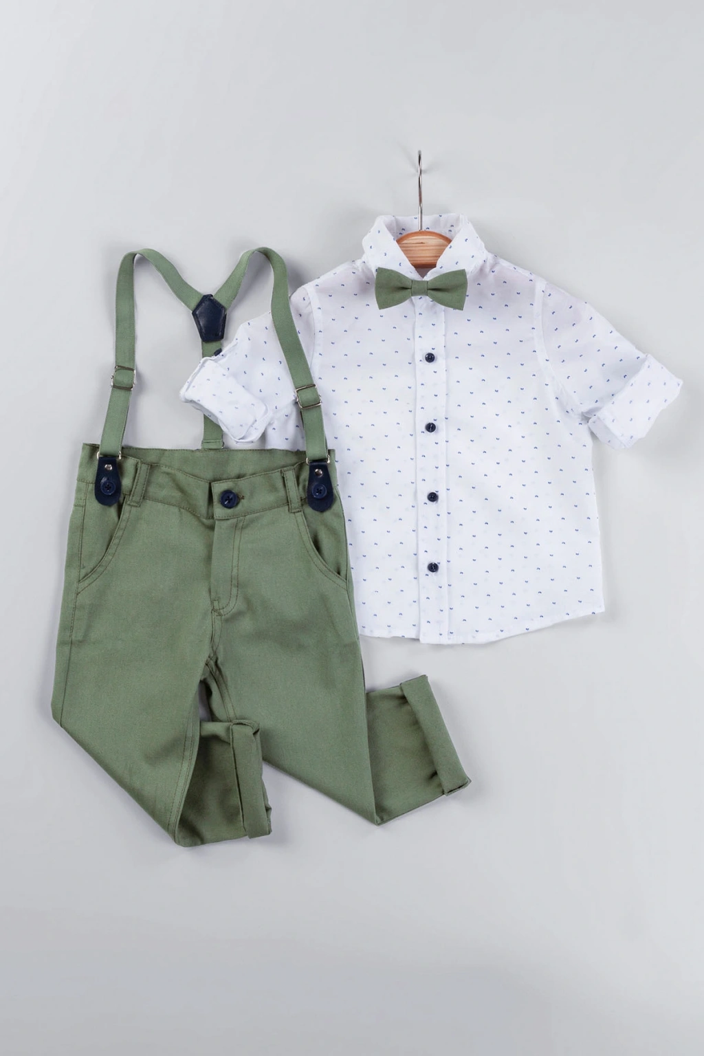 Bu özel tasarımıyla sunduğumuz salopetli gömlekli erkek çocuk takım, zarifliği ve rahatlığı bir arada sunuyor. ; Gömleğin üzerindeki yaprak desenleri, doğanın tazelik ve canlılığını çağrıştırırken çocuğunuzun şıklığını da ön plana çıkarıyor. ; İçerisinde pamuklu parçalar bulunduran ürünümüz, çocuğunuza yumuşacık bir his ve gün boyu konfor sağlar. ; Ürünün parçası olan seçkin papyon detayı, her türlü özel davet için mükemmel bir uyum sağlar ve çocuğunuzun her zaman en şık olduğunu garanti eder. ; Ürünümüz, altı farklı renk seçeneği ile geniş bir yelpazede sunulmaktadır. ; Bu özgün tasarımlı salopet, mağazamızın en özel ürünlerinden biridir. ; Yüksek kaliteli malzemeleri ve zarif tasarımı ile çocuğunuzun tarzını tamamlayacak en önemli parçalardan biri olacaktır.;