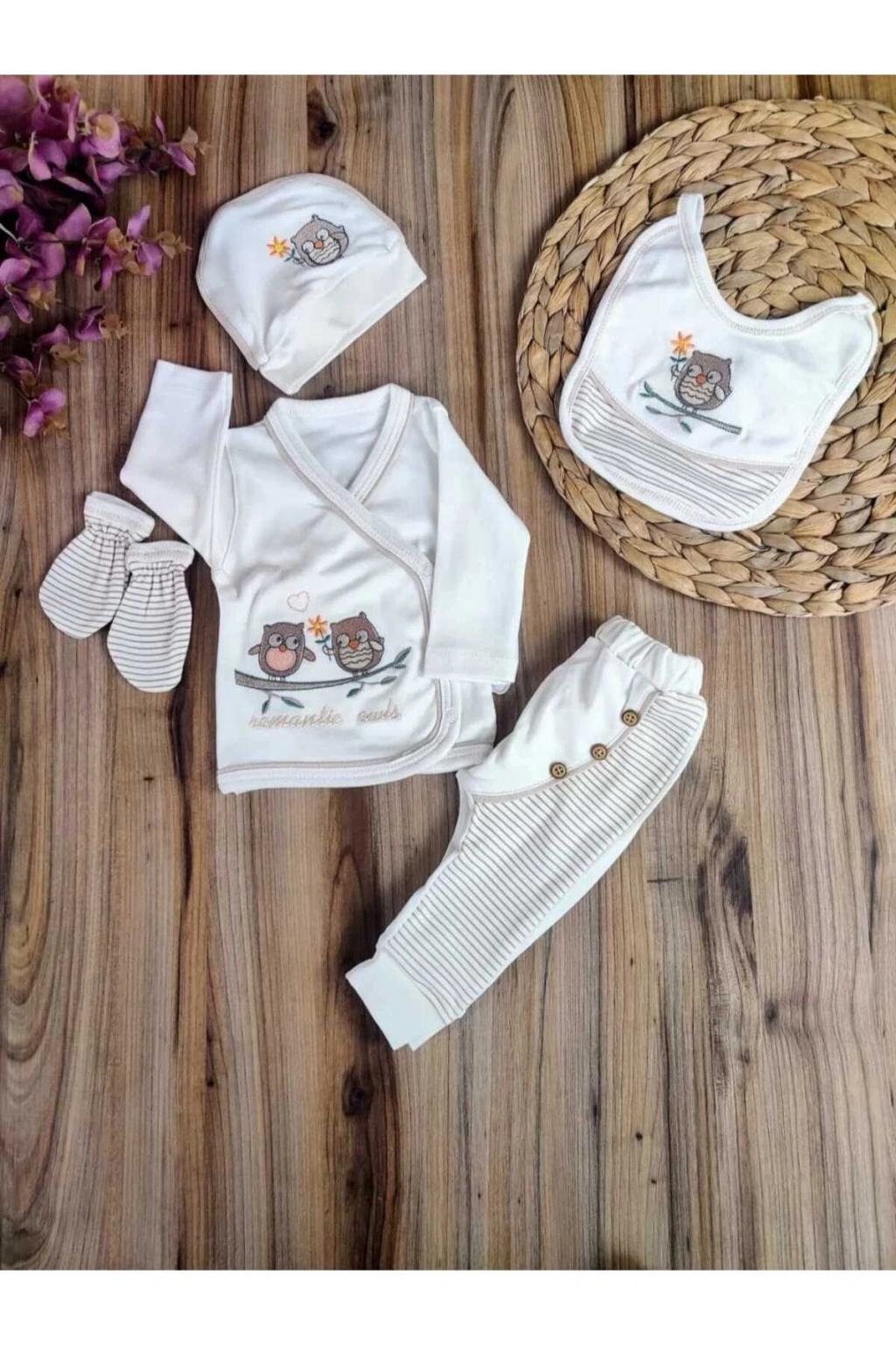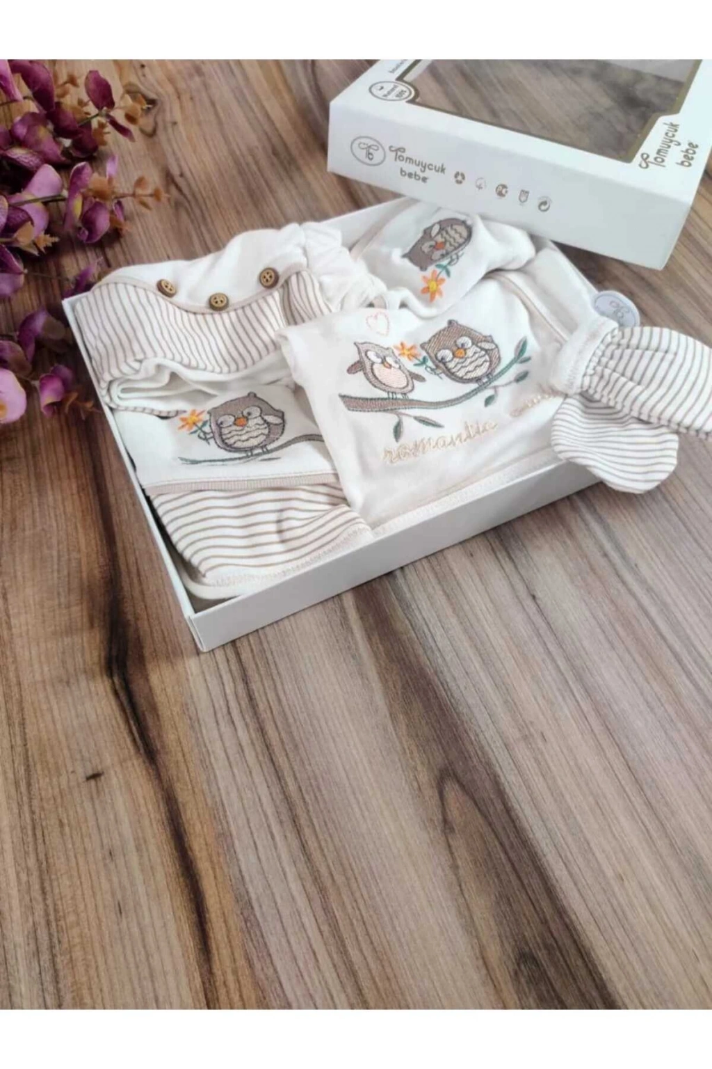 Çiçek desenleriyle süslenmiş bu set, bebeğinizin şıklığını ve neşesini yansıtırken, pembe renk tonuyla da sevimli bir görünüm sunar; - 5 parçadan oluşan bu set, hastane çıkışında bebeğinizin ihtiyaçlarını karşılamak üzere tasarlanmıştır; önlük, patik, şapka, eldiven ve çorap içerir; - Günlük kullanım için ideal olan bu set, bebeğinizin rahatlığı düşünülerek tasarlanmıştır; örme kumaşı sayesinde esneklik ve dayanıklılık sağlar; - Özel nakış detaylarıyla zenginleştirilmiş bu ürün, hem şık hem de fonksiyonel bir hediye seçeneği olarak öne çıkar;