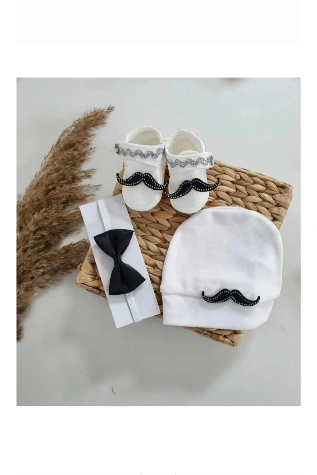 - Yeni doğan bebekler için özel olarak tasarlanmış, şık ve rahat bir papyon bere patik seti.; - Bebeğinizin ilk günlerinde sıcak tutacak ve stil katacak yumuşak dokulu malzemeden üretilmiştir.; - Erkek bebekler için ideal olan bu set, hem konforlu hem de estetik bir görünüm sunar.; - Türkiye'de üretilmiş olup, yerel malzemeler kullanılarak kalite standartlarına uygun olarak tasarlanmıştır.; - Bebek patikleri ile tamamlanan bu set, bebeğinizin ayaklarının rahat etmesini sağlarken şıklığından ödün vermez.