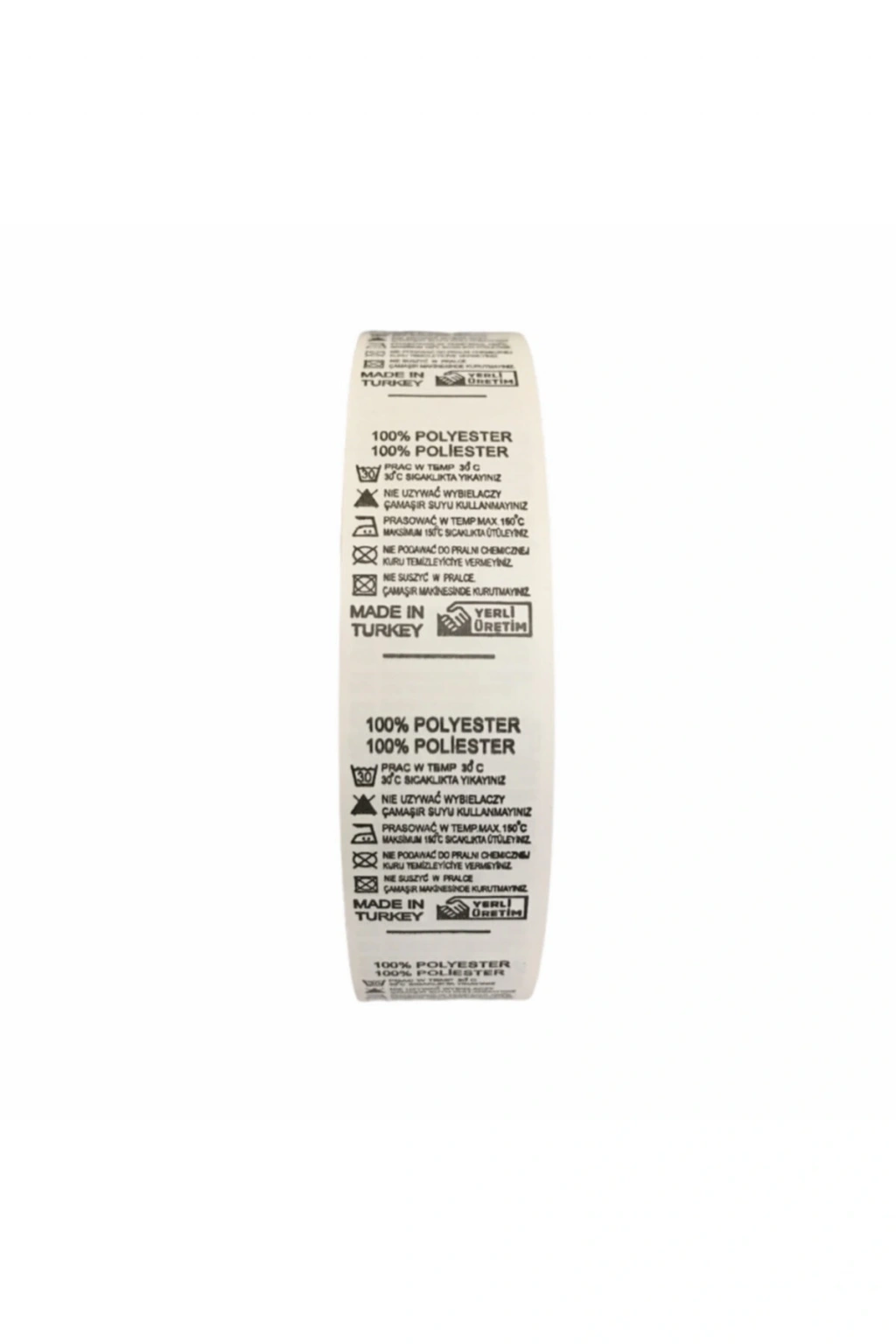 %100 polyester yıkama talimatı; 1 rulosunda 2500 adet bulunmaktadır; 3 cm genişliğindedir;